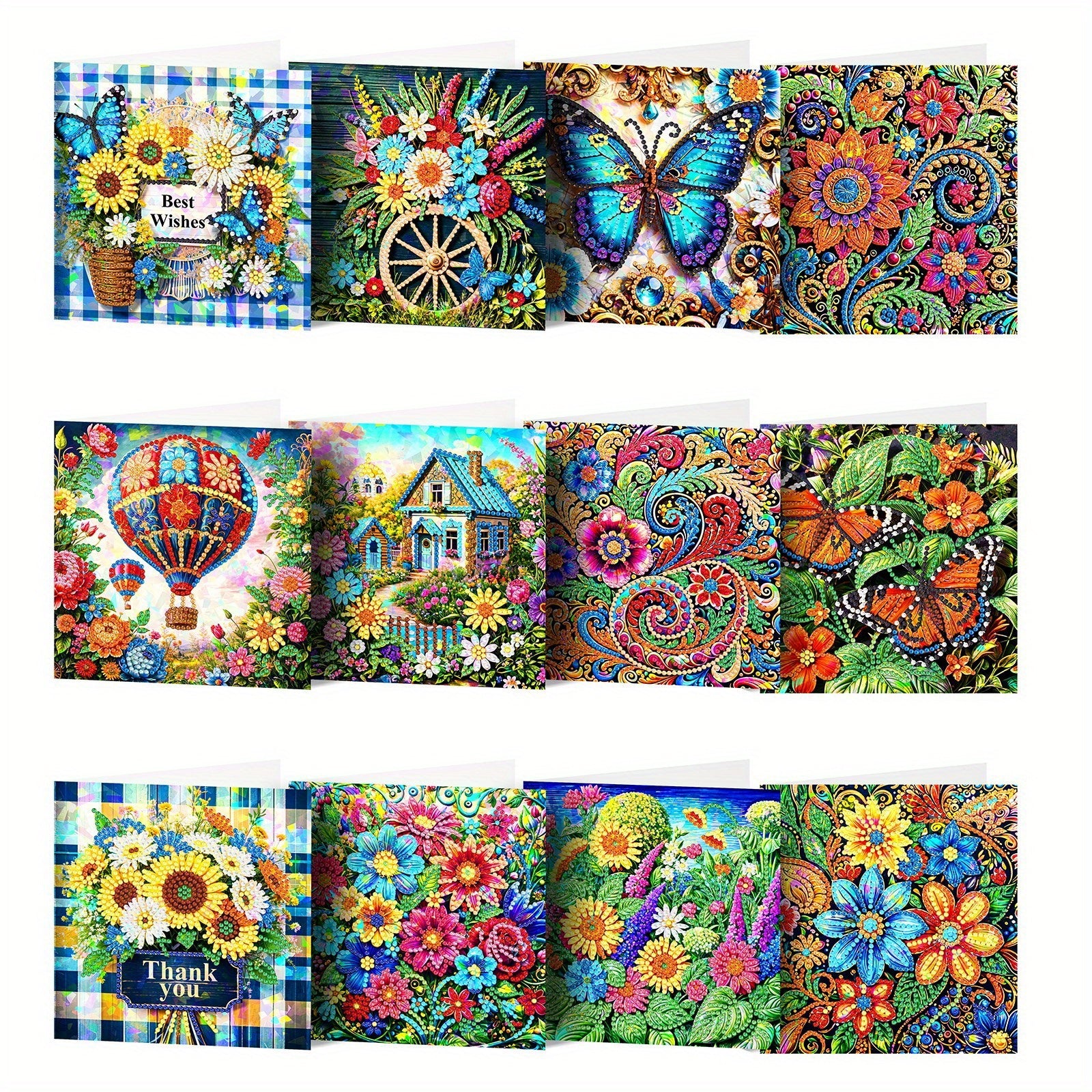 - 12-piece set for DIY diamond art greeting cards
