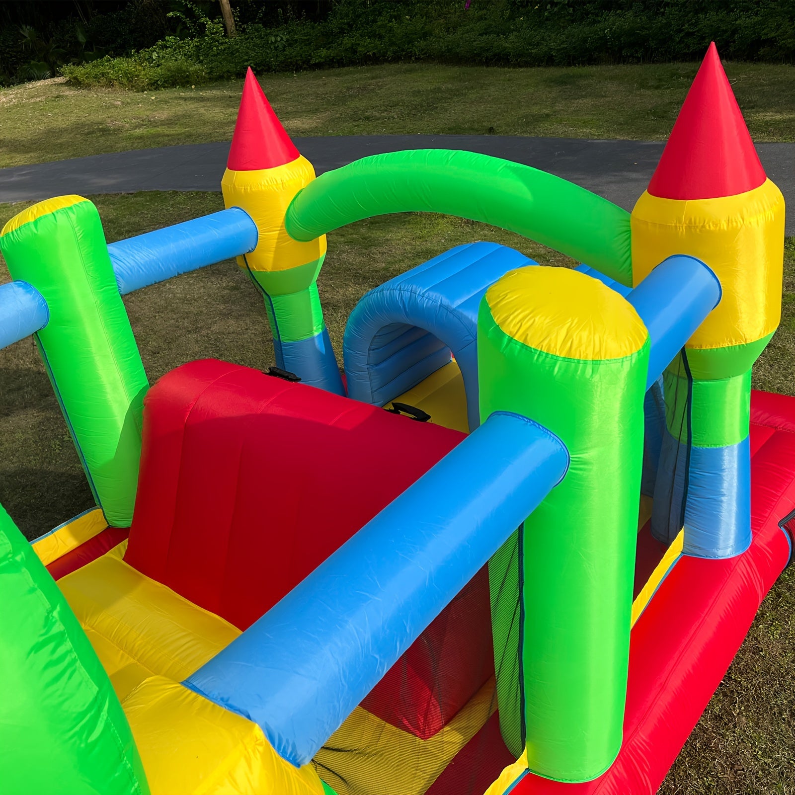 Discover the ultimate adventure for your little ones with our Inflatable Bounce House for Kids 3-12, featuring a built-in slide and an included blower for endless hours of safe, active fun. Designed by the trusted brand YUEGO, this vibrant multi-color bounce house is crafted from durable Oxford Cloth, ensuring it withstands energetic play while providing a secure environment for children aged 3 and up.