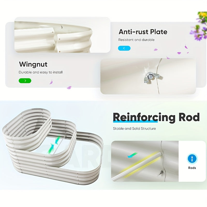 Designed for versatility, this garden bed kit fits patios, balconies, and yards, bringing organization and beauty to your gardening routine. The striped pattern and oval form add a contemporary touch to your landscape, while the galvanized metal design keeps maintenance minimal and longevity high. Originating from Guangdong, China, this garden bed kit is a reliable choice for gardeners who value functionality, safety, and style.