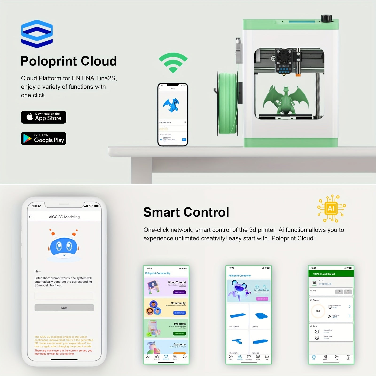 Meet the Tina2S 3D Printer With WiFi Cloud Printing — a compact, stylish powerhouse designed to fit any workspace while delivering reliable, wireless 3D printing from your smartphone. Built by ENTINA, Tina2S blends practical performance with a sleek, space-saving footprint for creators who value speed, simplicity, and connectivity.