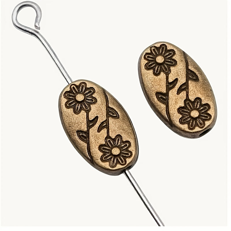 Elevate your jewelry designs with the Antique Copper Flower Oval Spacer Beads. These delicately engineered beads combine a vintage copper finish with a charming floral motif, adding timeless elegance to bracelets, necklaces, and more. Perfect as spacers, they create balanced, eye-catching segments between centerpiece beads while maintaining a cohesive, handmade aesthetic.