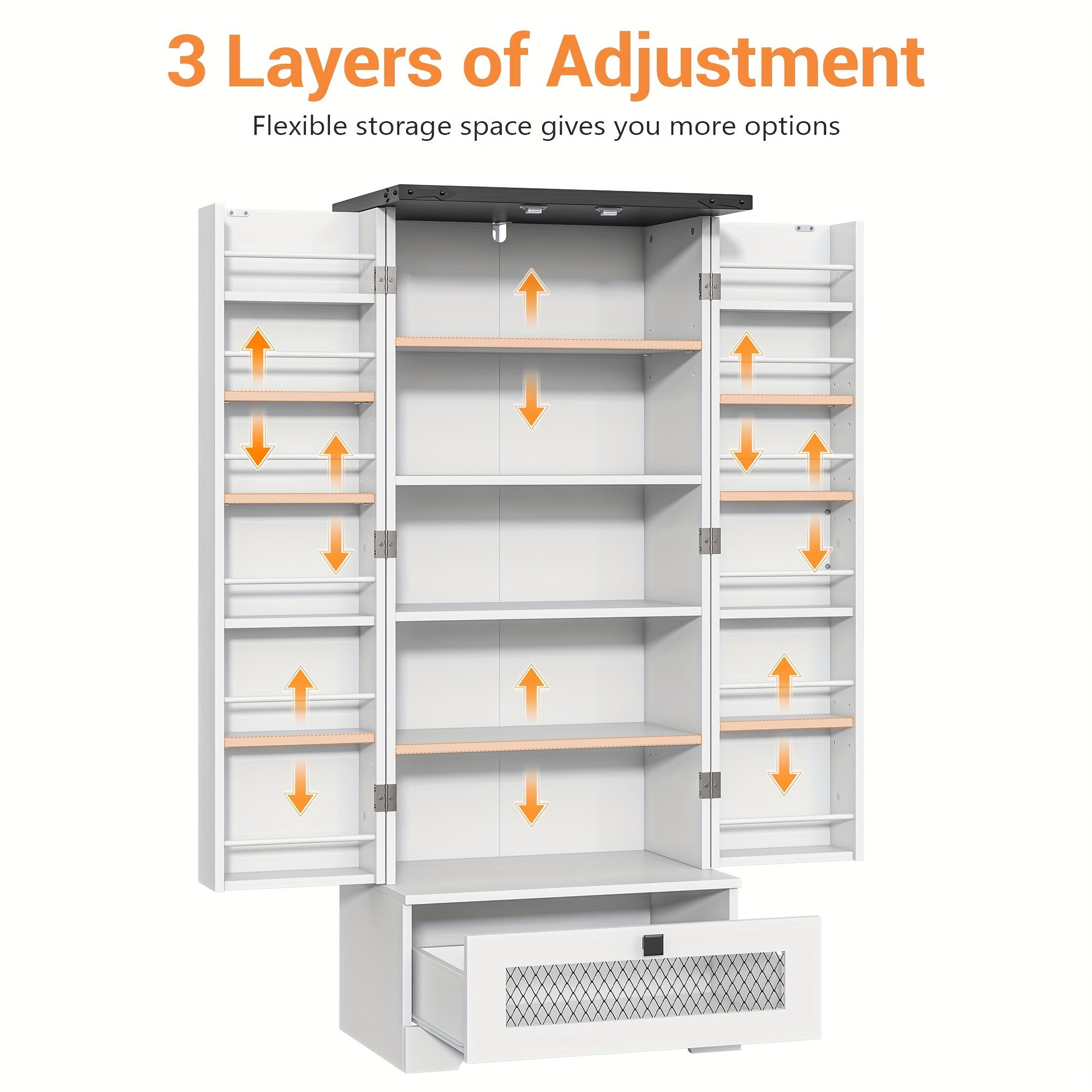 With streamlined shapes and elegant styling, this storage cabinet adds a sophisticated touch to your living and culinary spaces while offering practical, versatile storage. Elevate your organization—and your decor—with this durable, easy-to-use pantry cabinet that makes everything feel within reach.