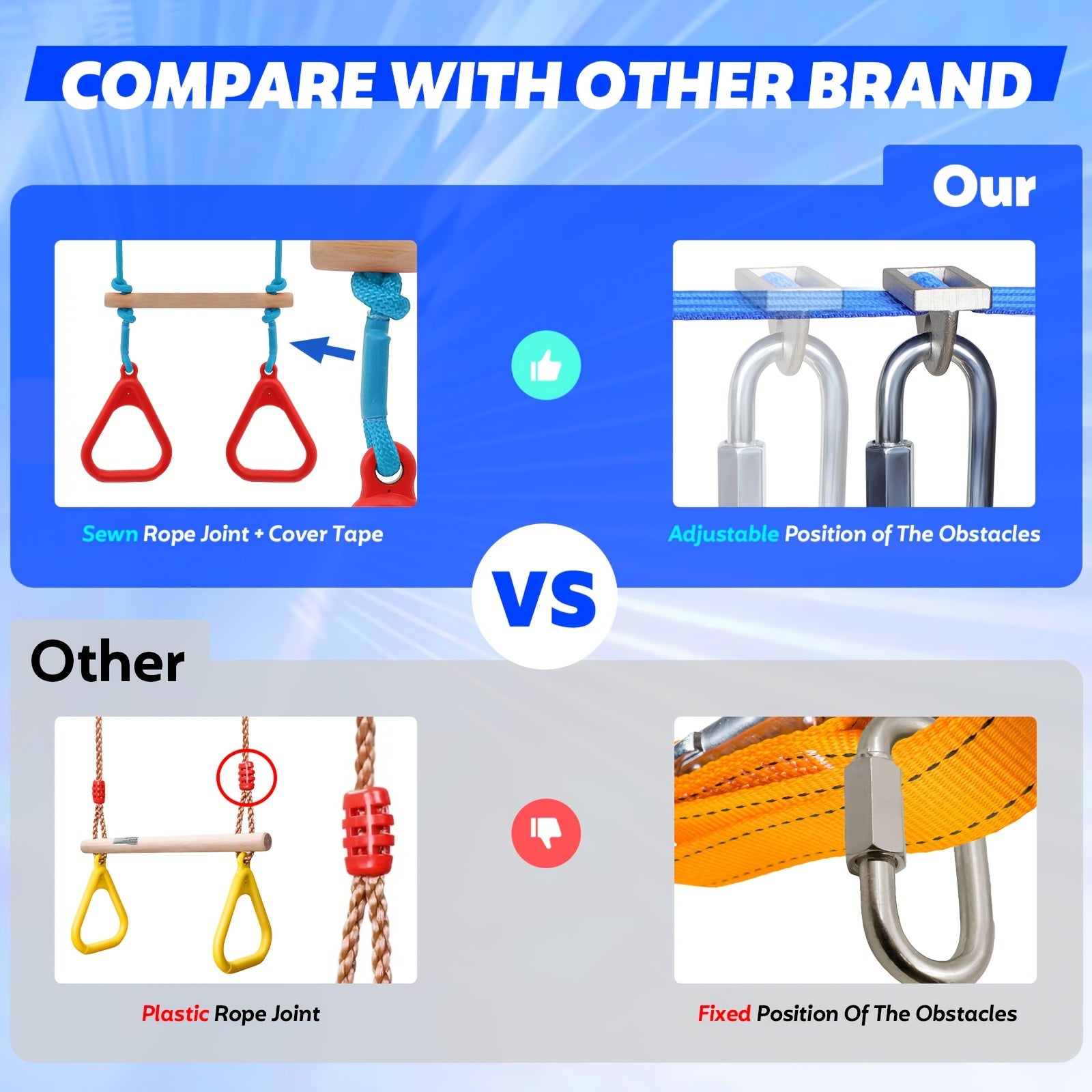 - Extensive Length and Durability: At 65 feet long, this obstacle course provides ample space for running, jumping, and climbing, made from high-quality materials originating from Guangdong, China, ensuring it withstands outdoor elements.
