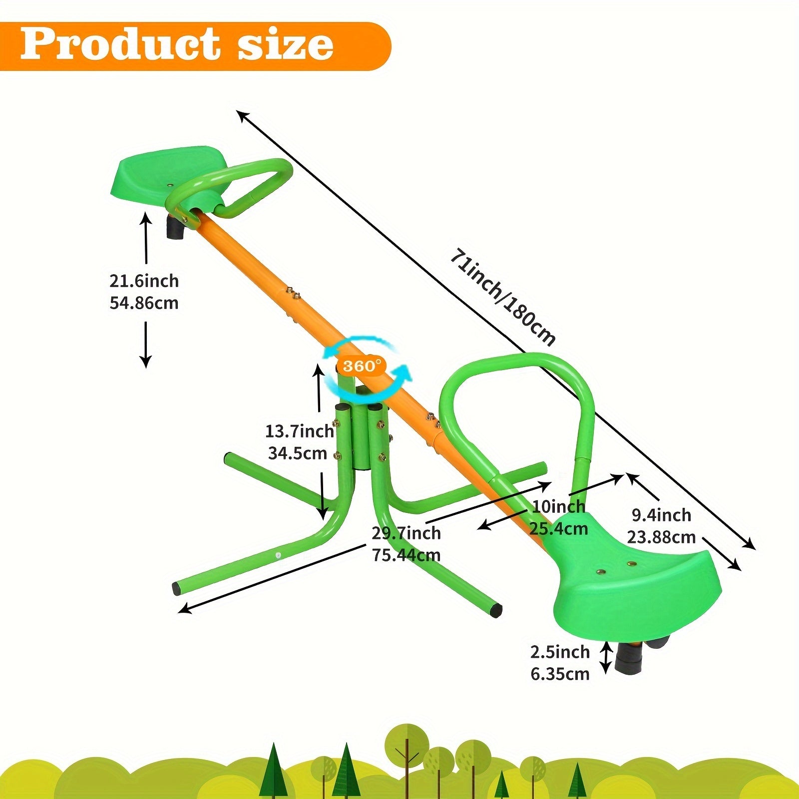 - 2-in-1 design: Seamlessly transitions between a traditional rocking seesaw and a dynamic 360° rotation experience for endless play.