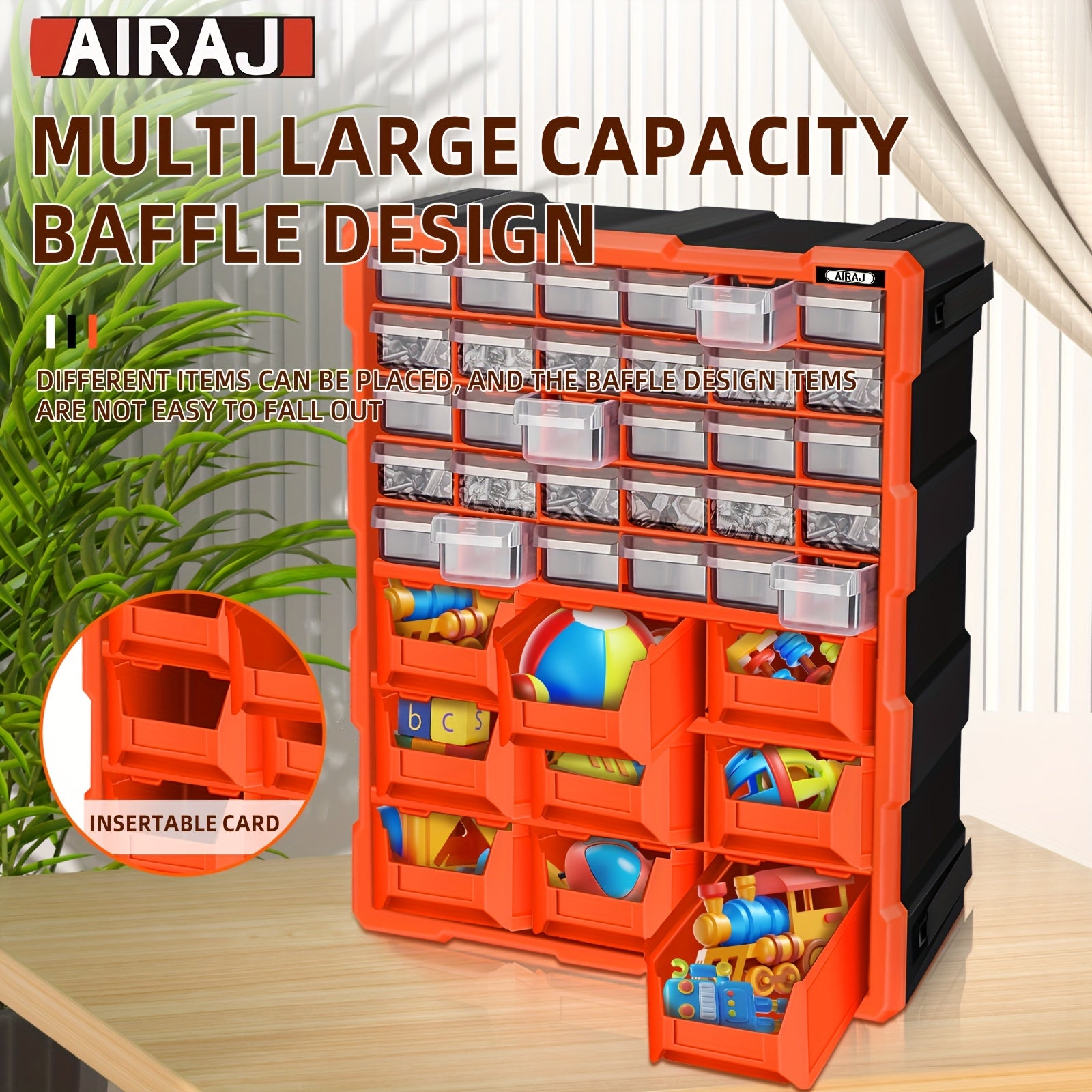 Discover the ultimate organization solution with the AIRAJ 39-Drawer Orange Wall Mount Storage Cabinet, perfect for keeping your space tidy and efficient. This contemporary-style cabinet features a durable plastic back and is designed for easy wall mounting, making it ideal for kitchens, garages, or craft rooms. With 39 spacious drawers equipped with middle dividers, you can effortlessly sort and store small items like hardware, screws, beads, or art supplies, ensuring everything has its place.