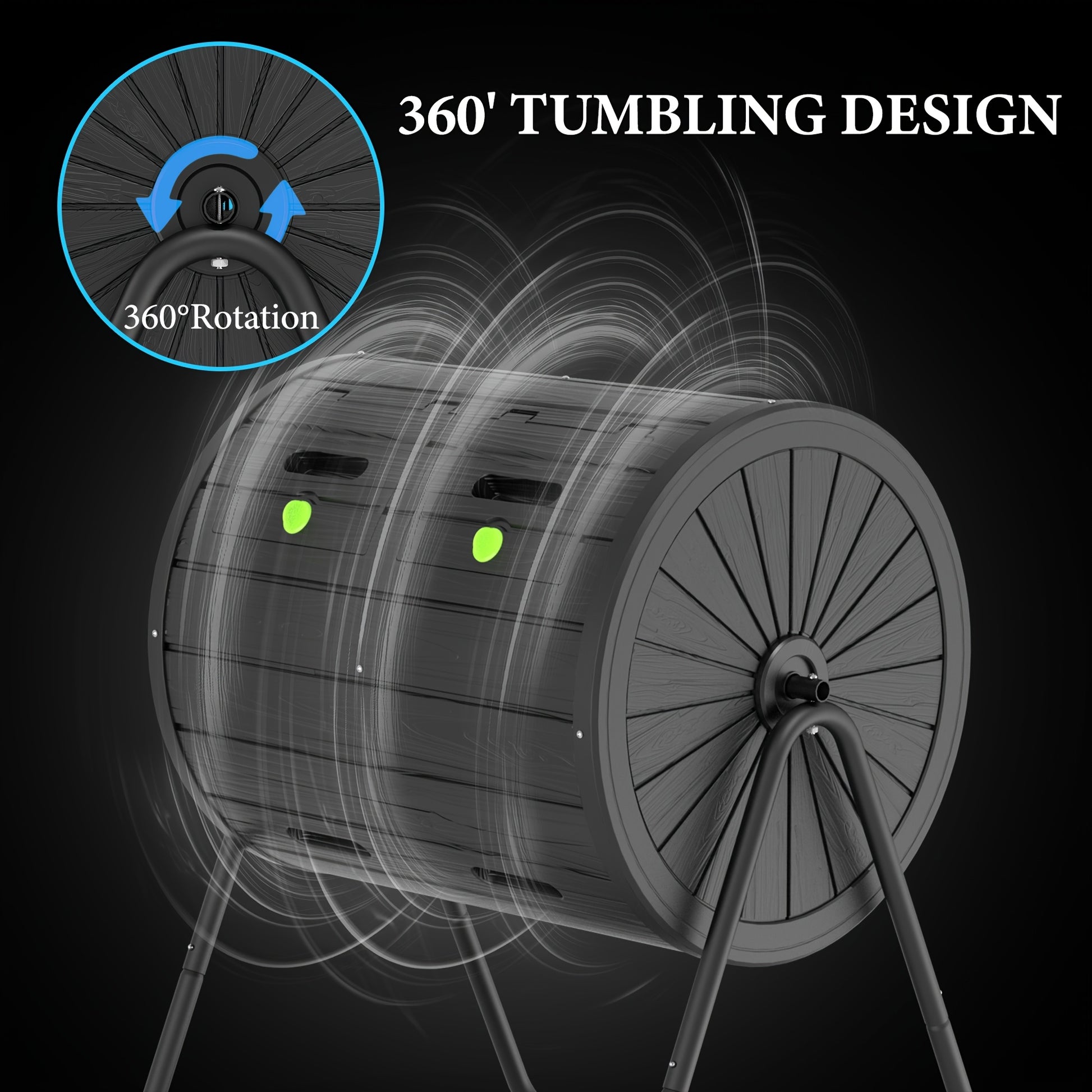 Turn kitchen scraps and yard waste into nutrient-rich compost with the EASYUP 43-Gallon Black Dual-Chamber Tumble Compost Bin with Swivel. This compact, dual-chamber design lets you manage ongoing composting effortlessly, so you can fill one chamber while the other ferments.