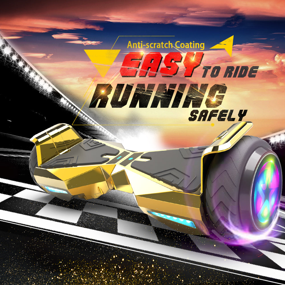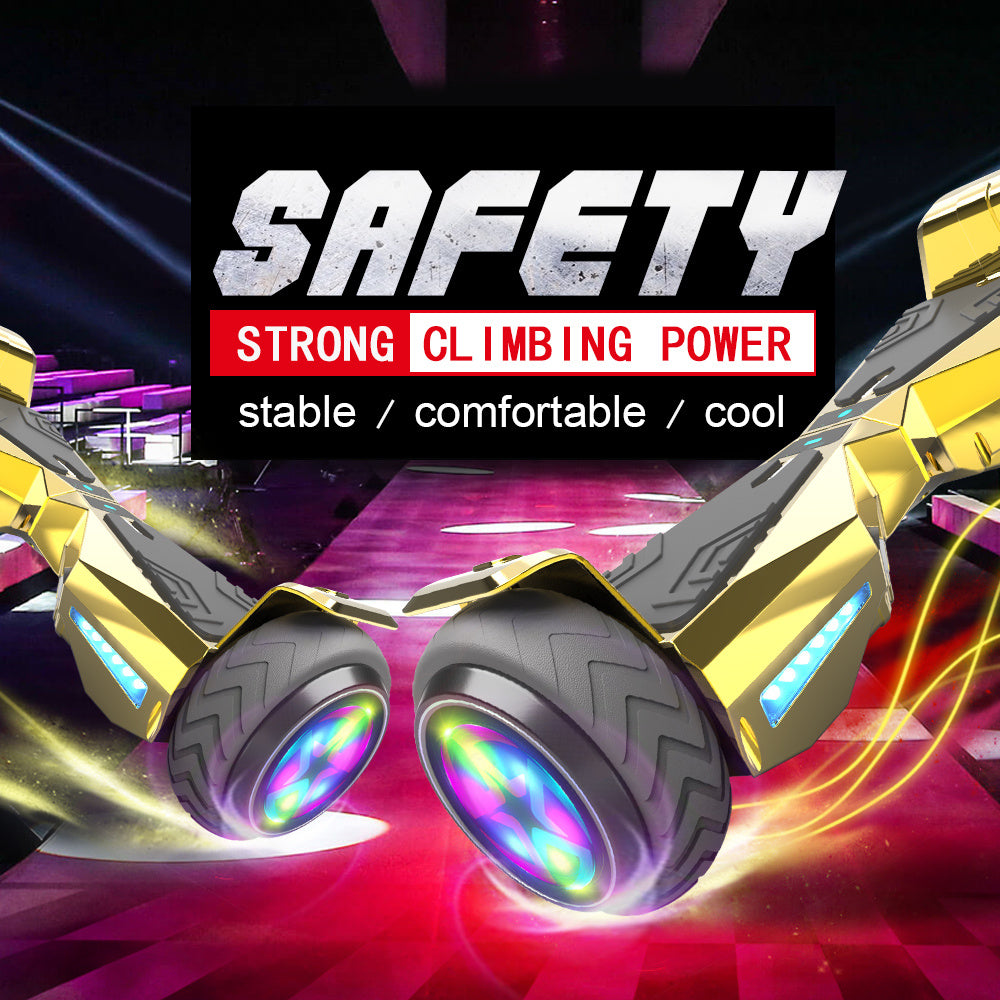 Experience standout style and dependable performance with the Bluetooth Hoverboard Chrome Wheel LED Lights Self Balancing. In a striking golden finish with chrome LED wheels, this board is built to turn heads while delivering stable, rider-friendly operation.