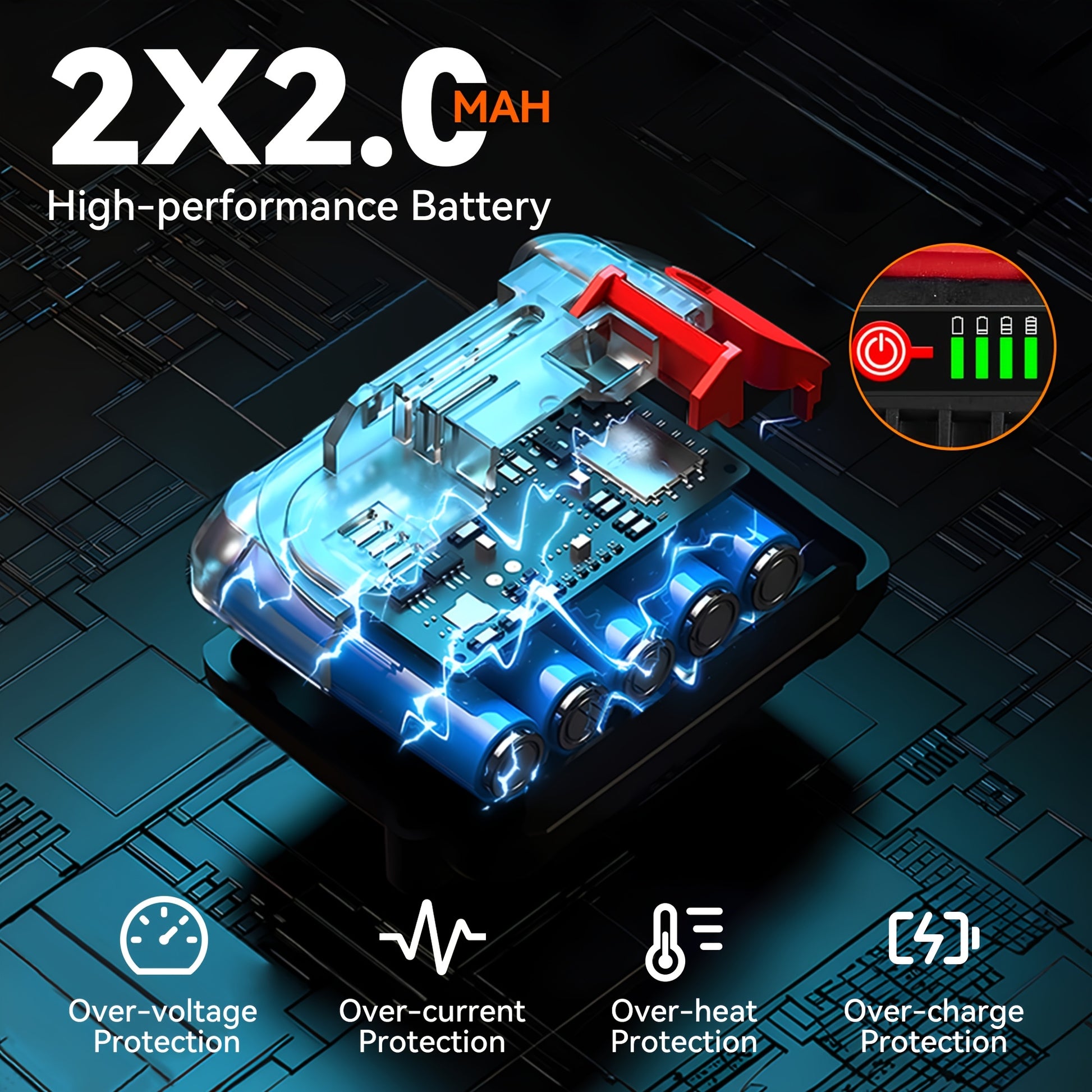 - Longer runtime— two 1500 mAh Li‑ion batteries provide about 30 minutes of use per battery; swap them to minimize downtime.