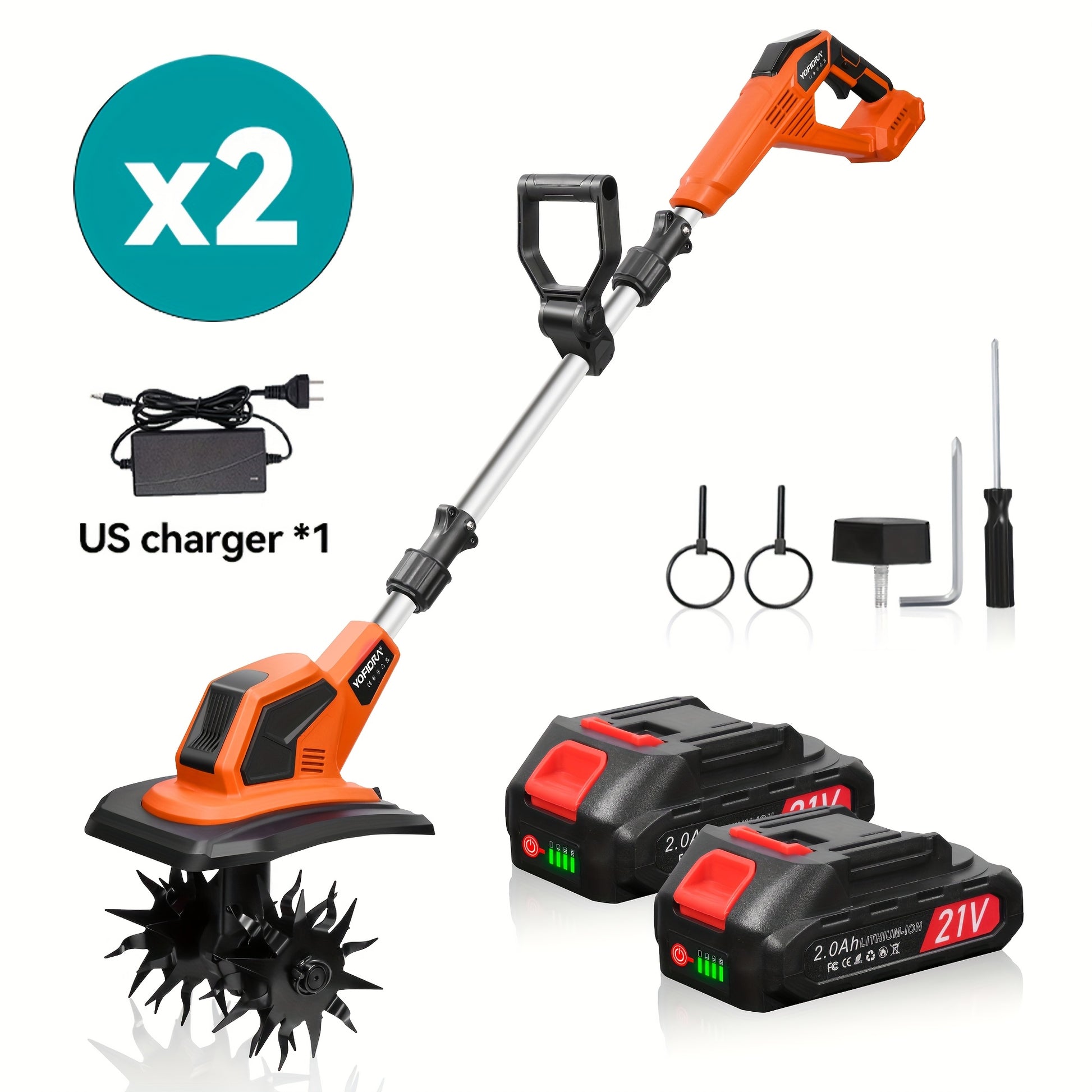 - Cordless convenience with two rechargeable Li‑ion batteries for portable, on-the-go tilling.