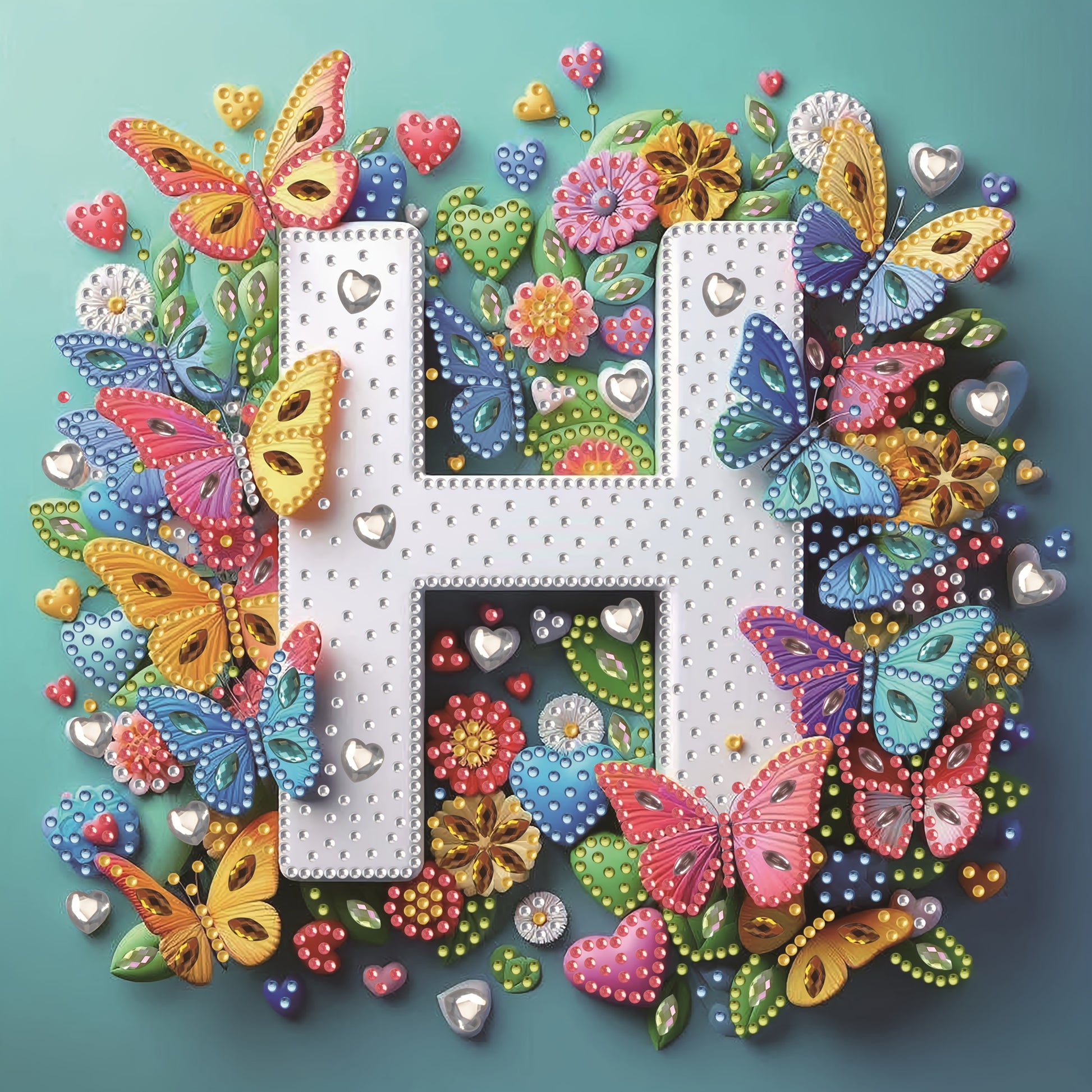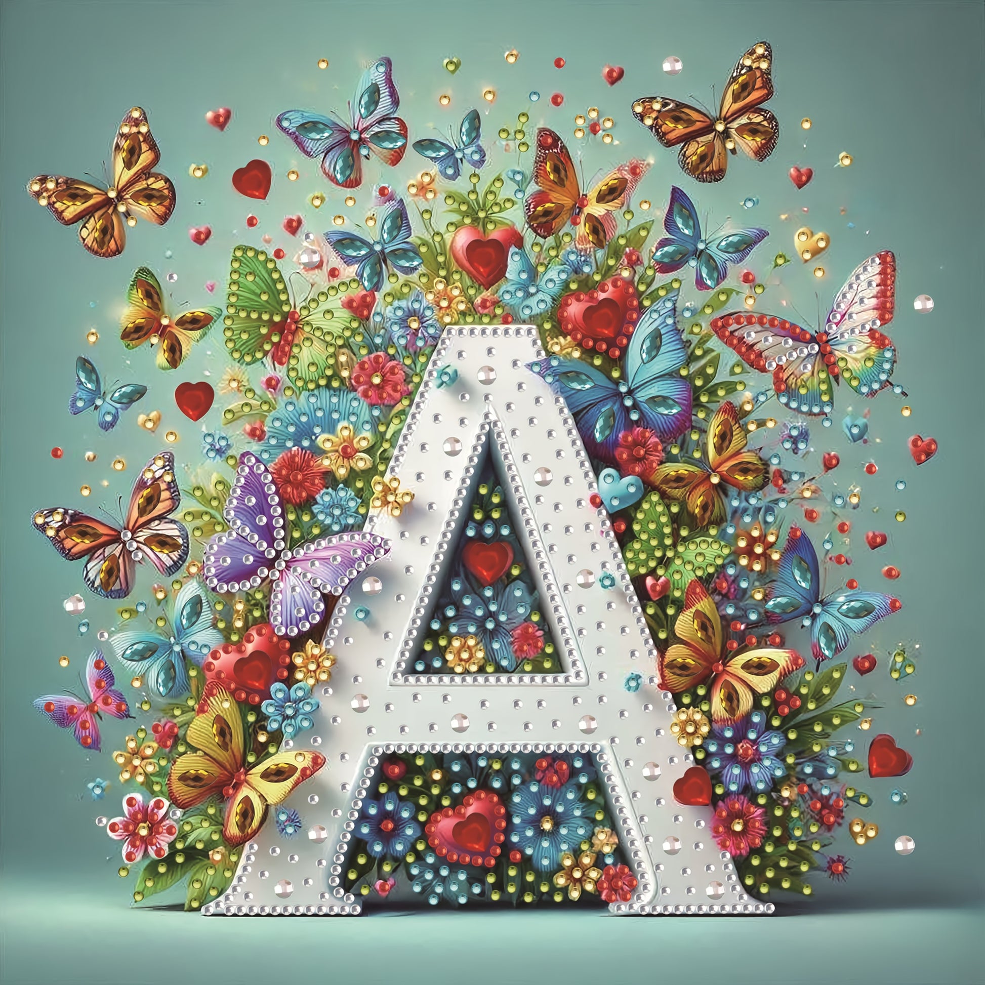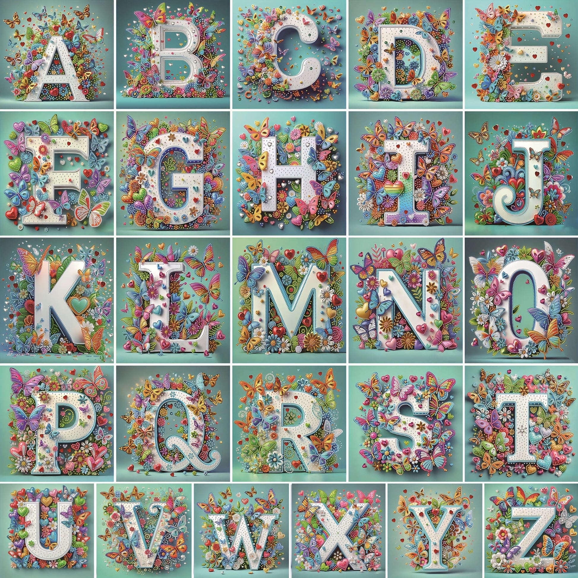 DIY Alphabet Diamond Painting Kit with Butterfly Designs