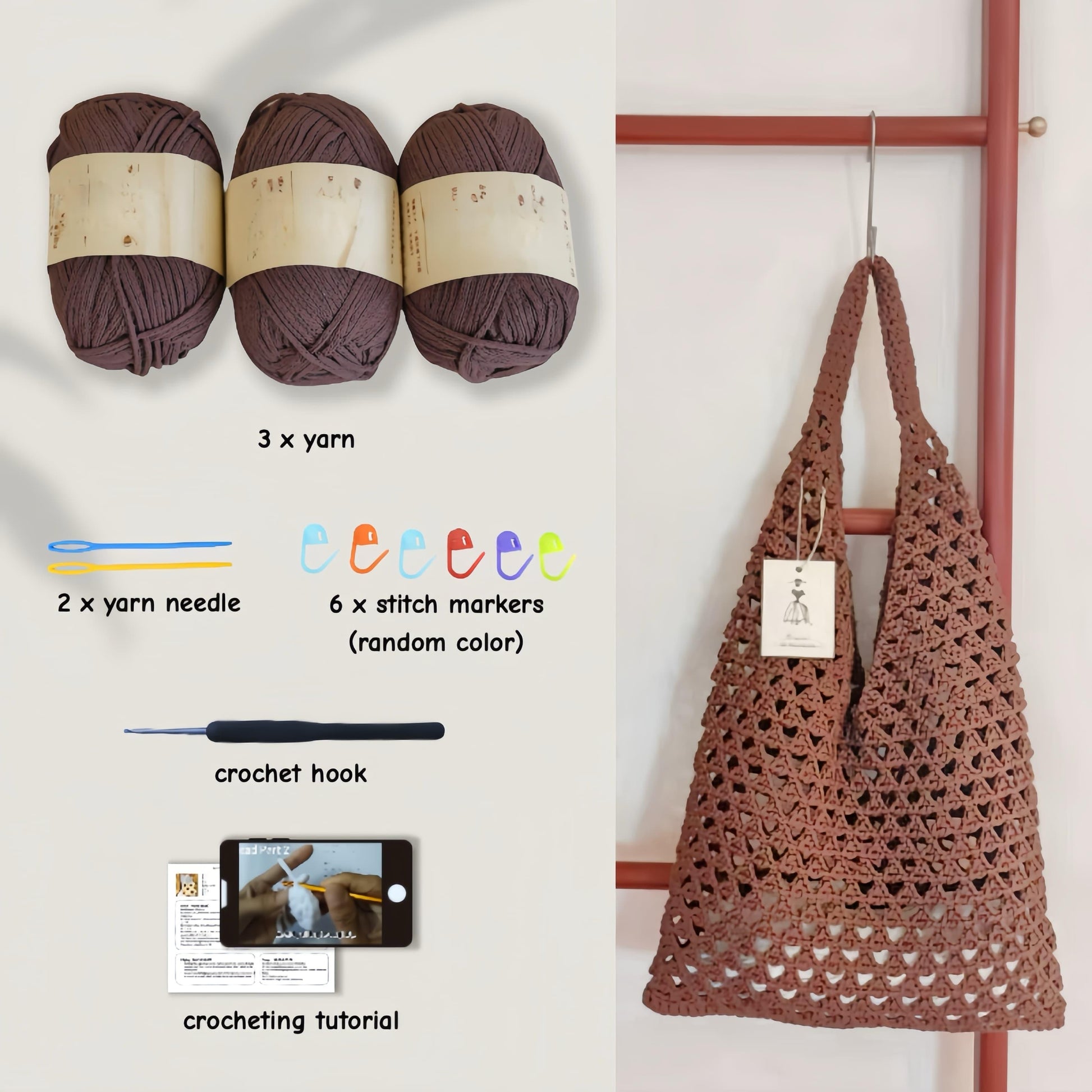 - Beginner-friendly brown yarn set tailored for the bag pattern