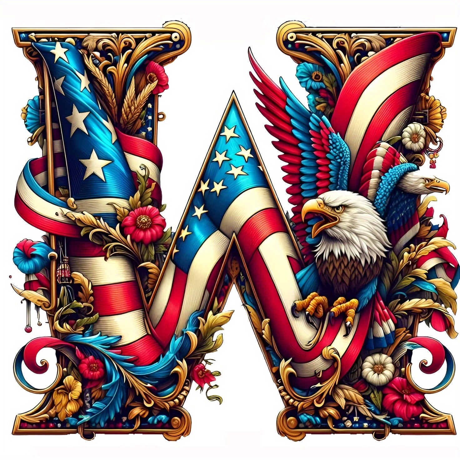 Designed for fans of 5D diamond art and alphabet-themed decor, this kit features a vibrant eagle flag design using 25 letters (AZ) to create an eye-catching focal point for any room.
