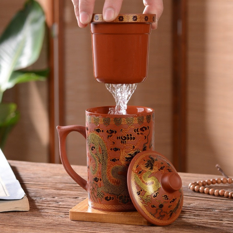 Purple Ceramic Tea Cup With Lid Dragon Color Changing Design