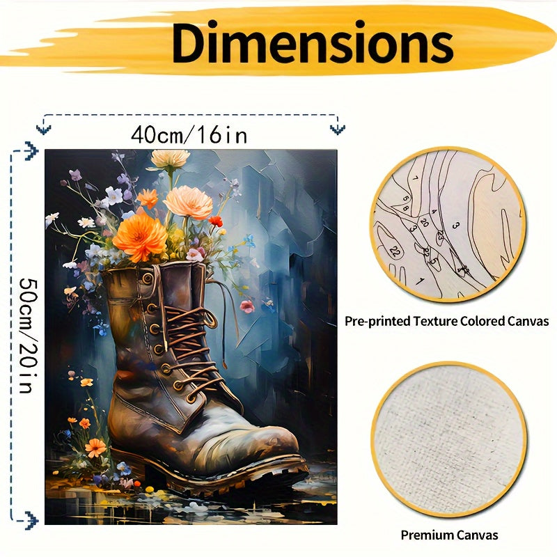 Floral Boot Paint By Numbers Kit For Adults is an irresistible acrylic set designed to transform a blank canvas into a vibrant, blooming artwork. Perfect for relaxing after work, honing your painting skills, or gifting a thoughtful craft experience.