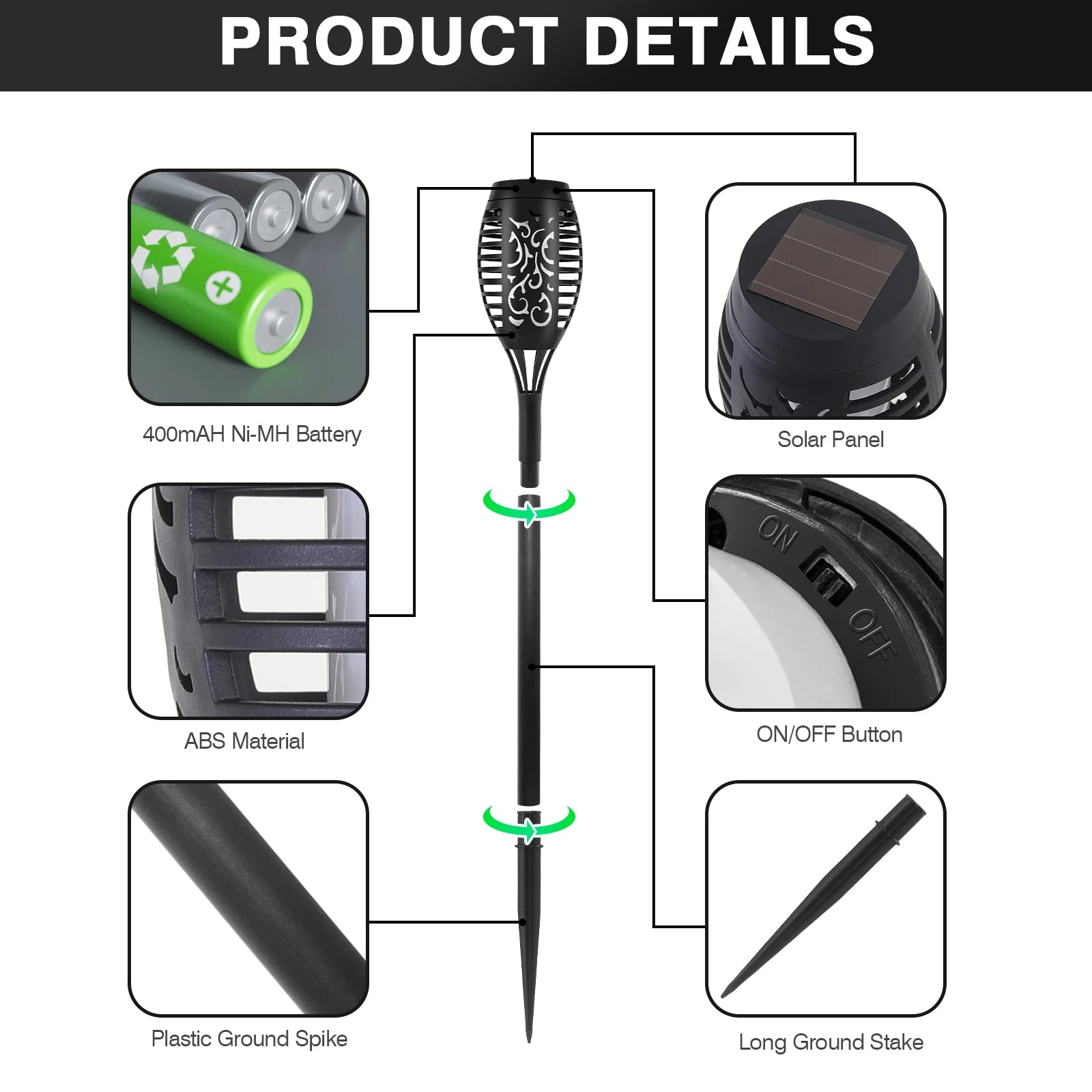 Enhance your outdoor space with the stunning Green Solar Flame Light, a perfect blend of functionality and aesthetic appeal. This innovative solar torch lamp mimics the mesmerizing flicker of a real flame, creating a warm and inviting atmosphere in your garden, yard, or patio.