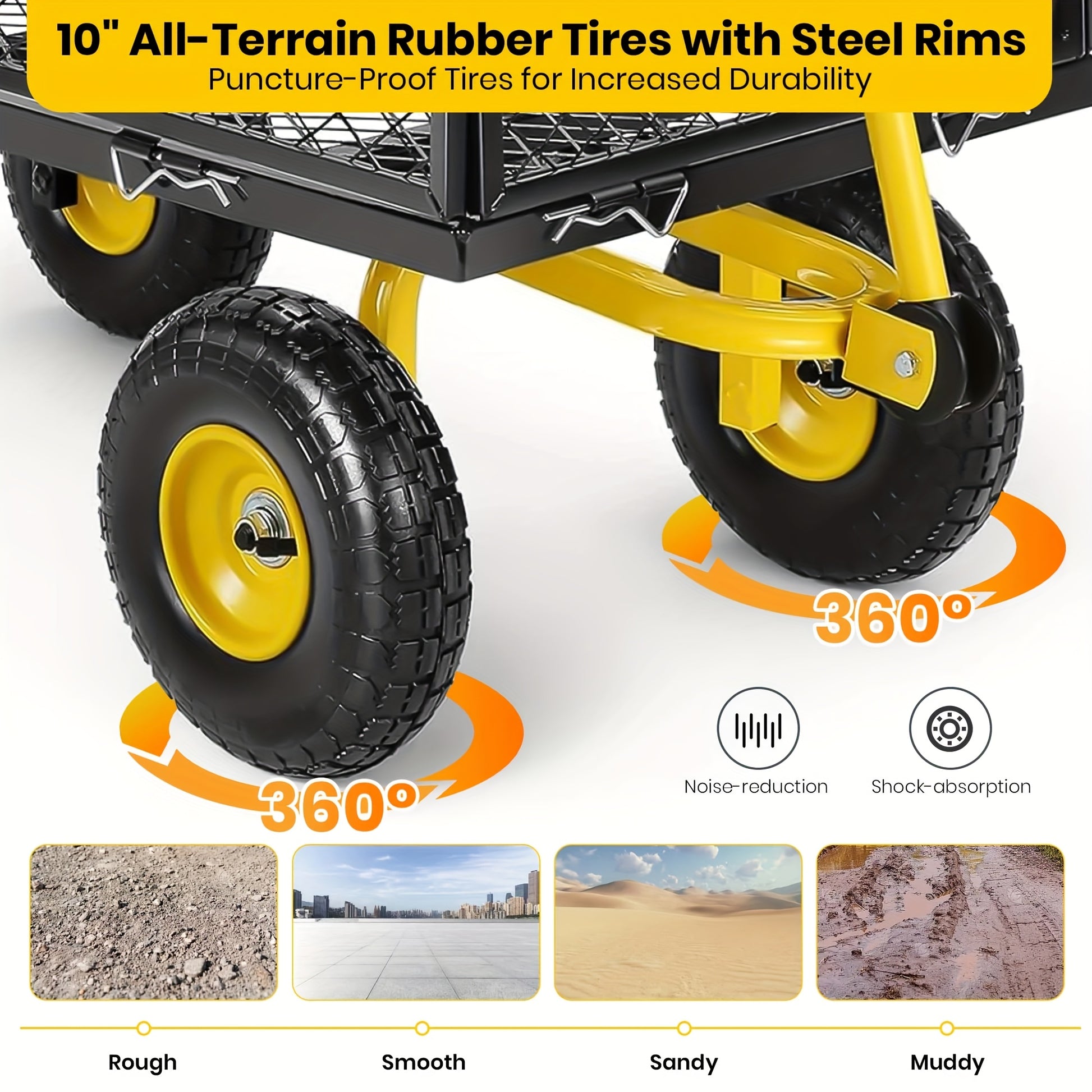 Ultra-strong 880 LBS capacity ensures you can transport heavy loads—from soil and gravel to tools and firewood—without multiple trips. The 40" long by 20" wide steel mesh bed provides ample space to maximize your efficiency.