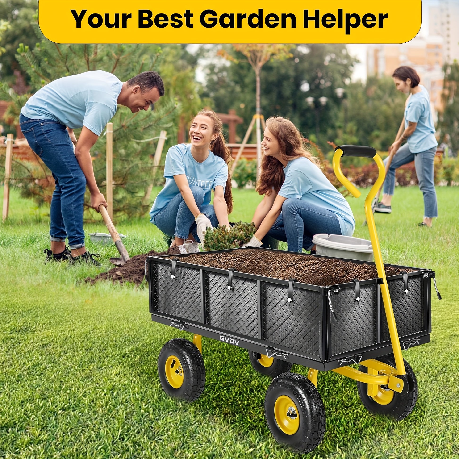 GVDV Heavy Duty Steel Garden Cart With Liner And Mesh Sides