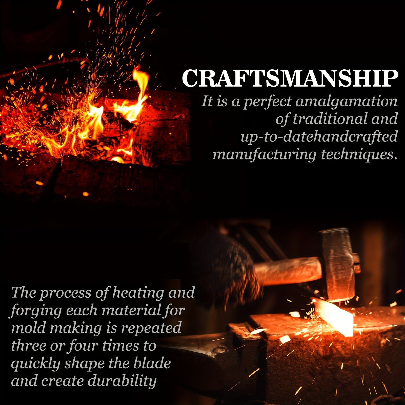 - Hand-Forged High Carbon Steel: Forged through over 70 meticulous steps—heat treatment, hammering, quenching, and cold shaping—each blade embodies authentic craftsmanship. The visible forged texture is a mark of authenticity, with no two blades exactly alike.