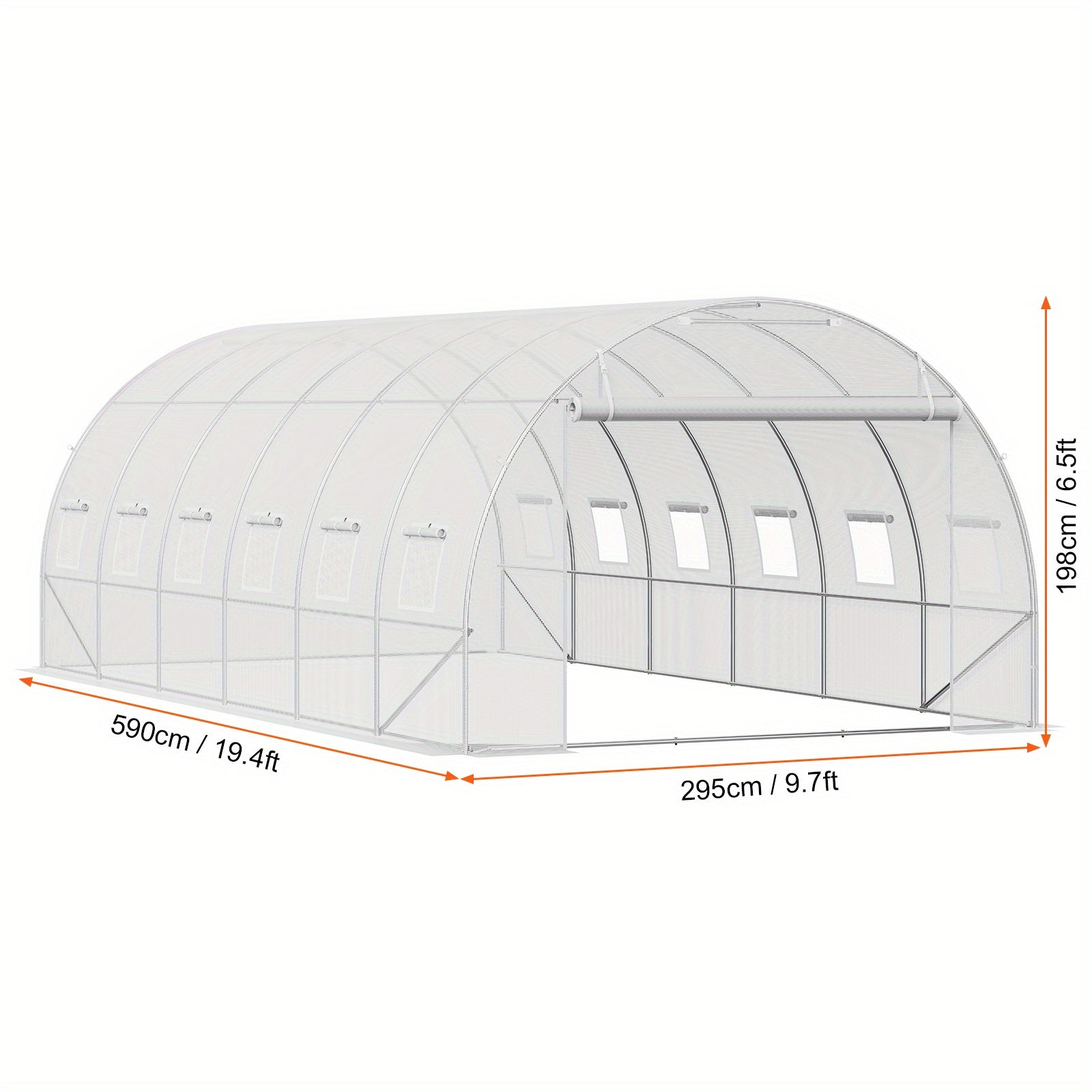 Happybuy Walk In Tunnel Greenhouse — a spacious outdoor greenhouse designed to extend your growing season and protect plants from the elements. Measuring 19.4 ft long, 9.7 ft wide, and 6.5 ft high (approximately 5.92 m x 2.96 m x 1.98 m), this walk-in tunnel offers generous space for seedlings, beds, and containers.