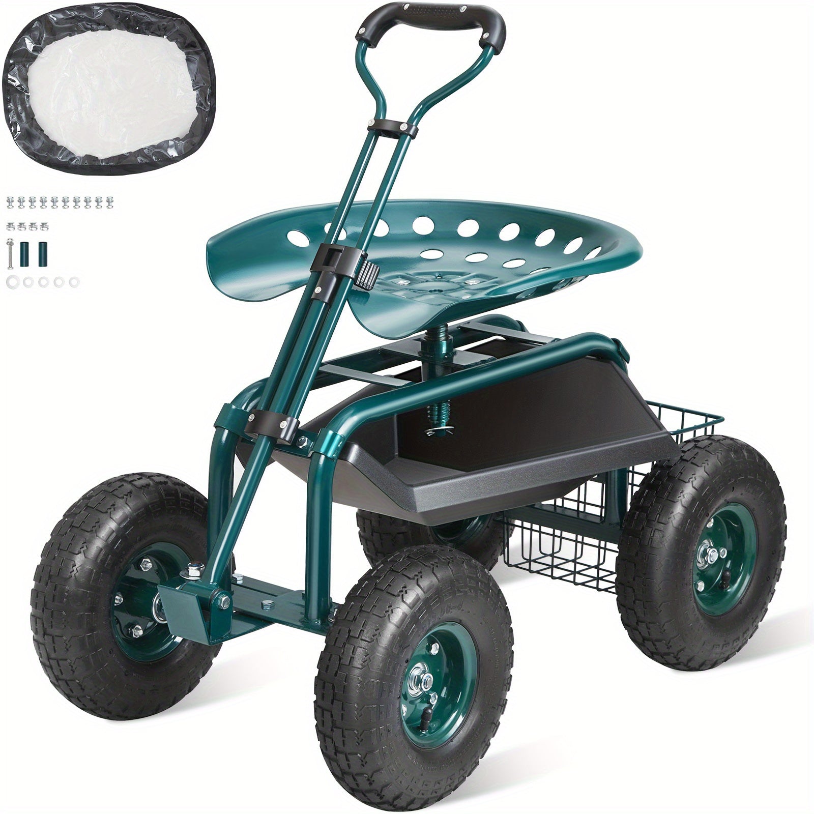 Heavy Duty Adjustable Garden Seat With Wheels Metal Frame