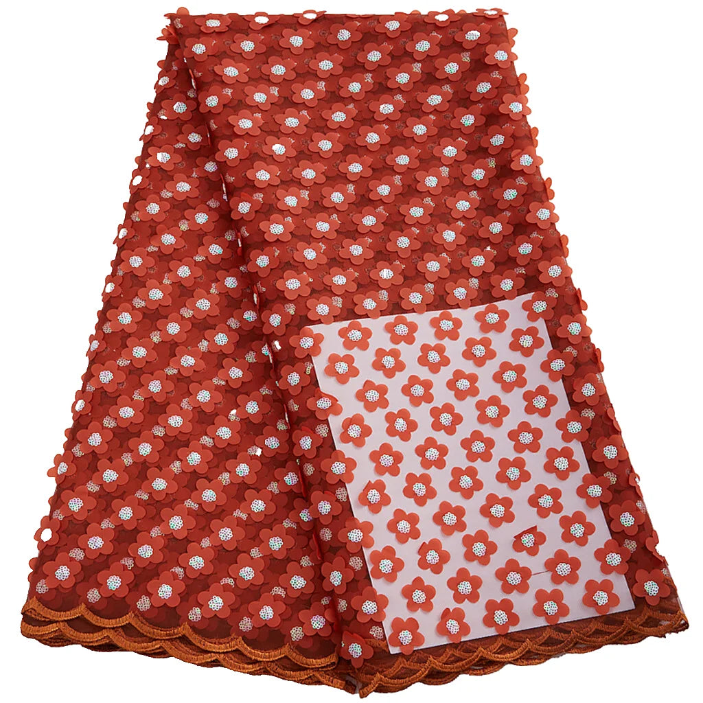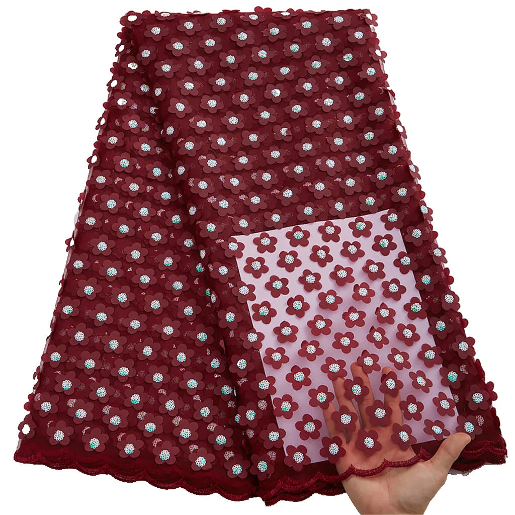 High Quality 3D Flower Sequins French Mesh Lace Fabric 5 Yards