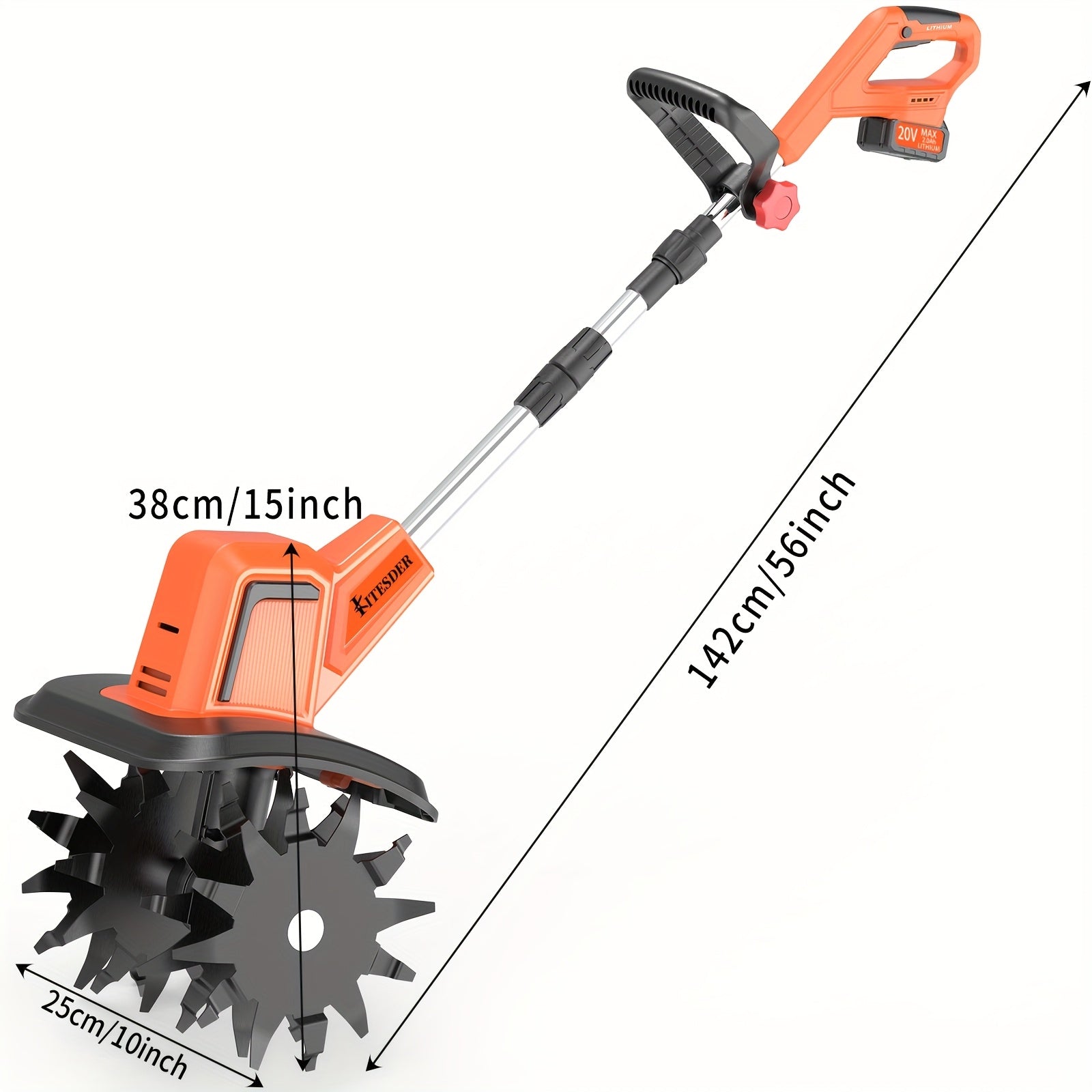 Meet the KITESDER 20V Tiller Cultivator — a compact, high-performance tool designed to transform garden soil with minimal effort. With a 9 inch wide working footprint and 4x12 durable tines, this cultivator slices through soil, aerates beds, and uproots weeds for quicker, healthier planting.