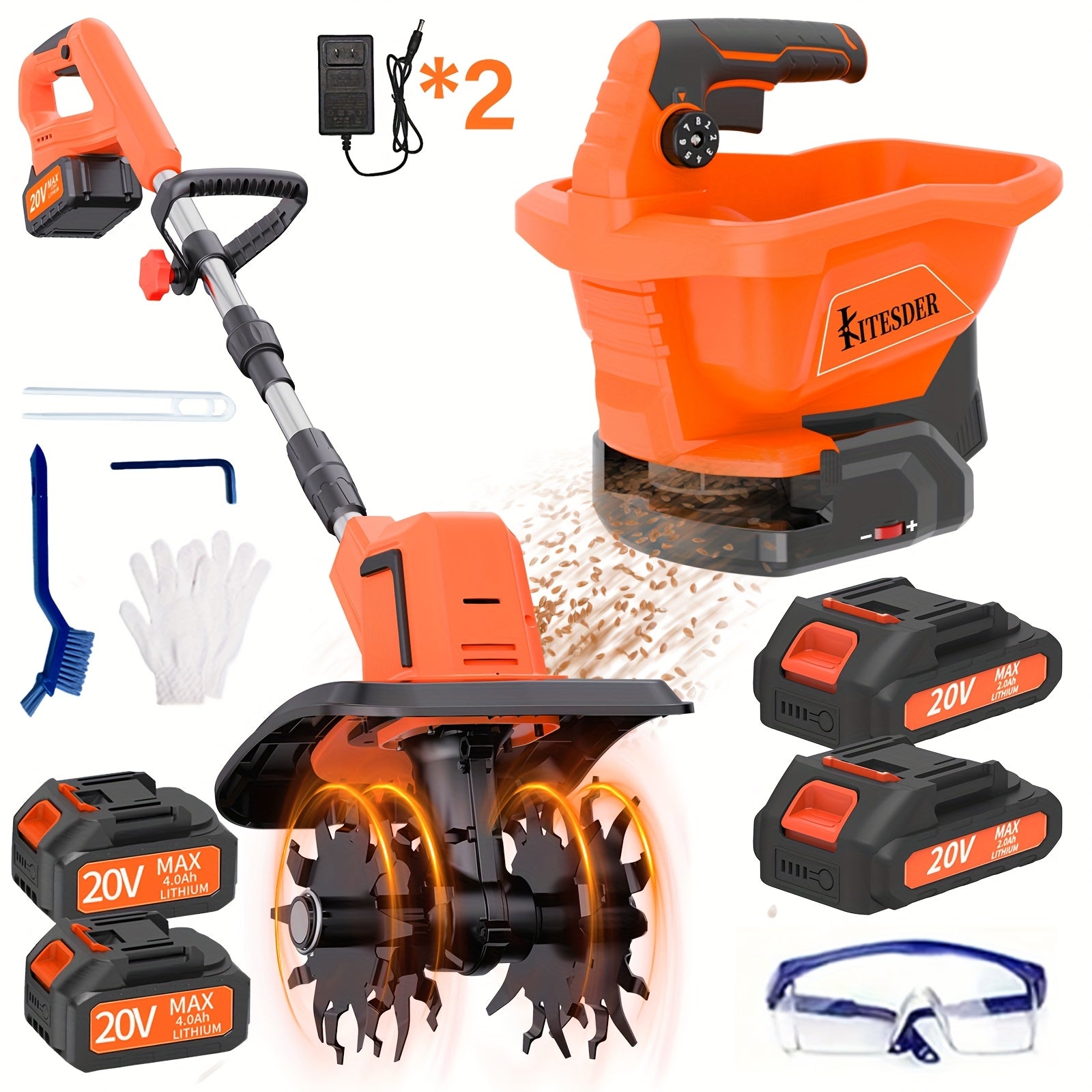 KITESDER 20V Tiller Cultivator 9 Inch Wide 4x12 Tines