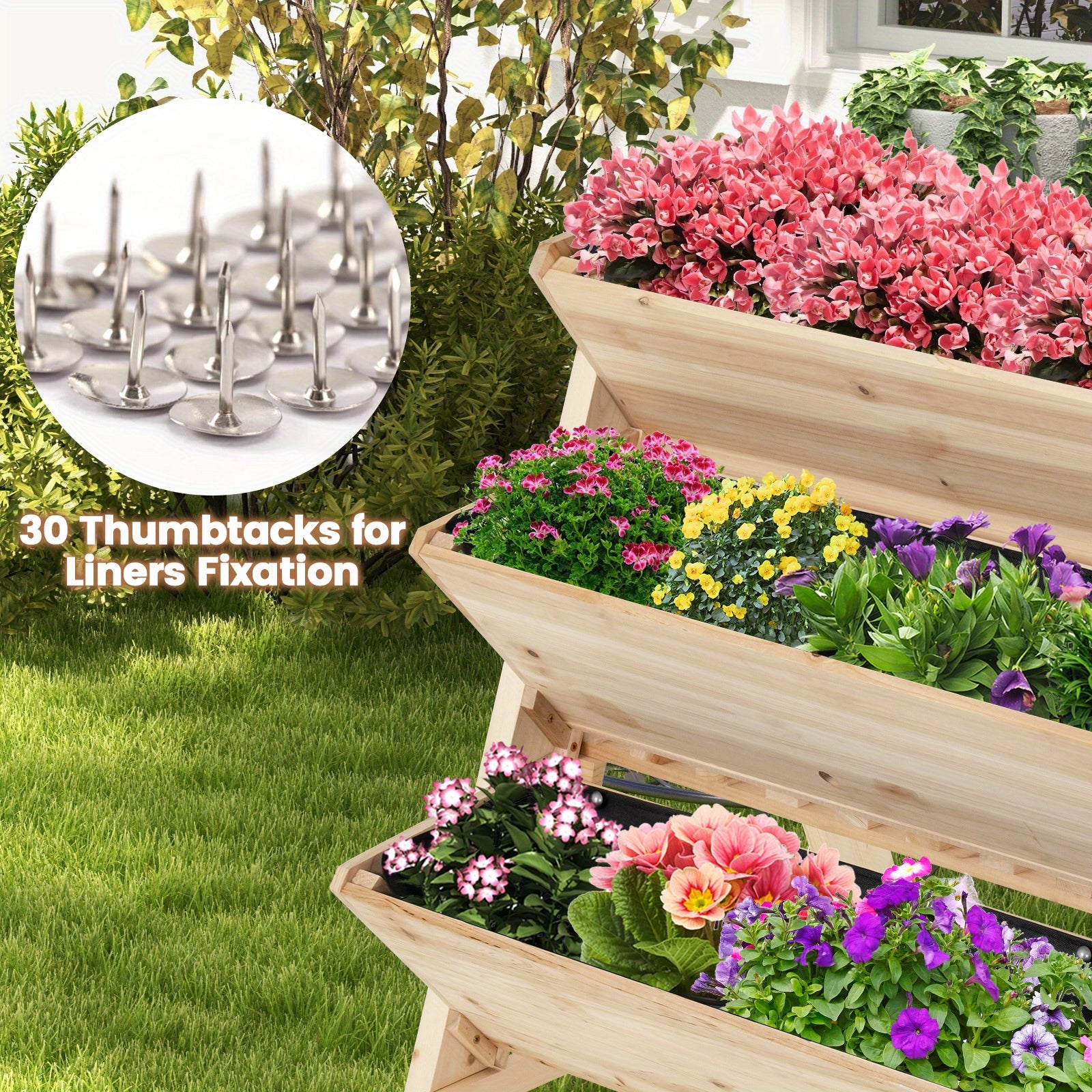 - Includes a protective liner in each level to retain soil and promote drainage, helping prevent spills.