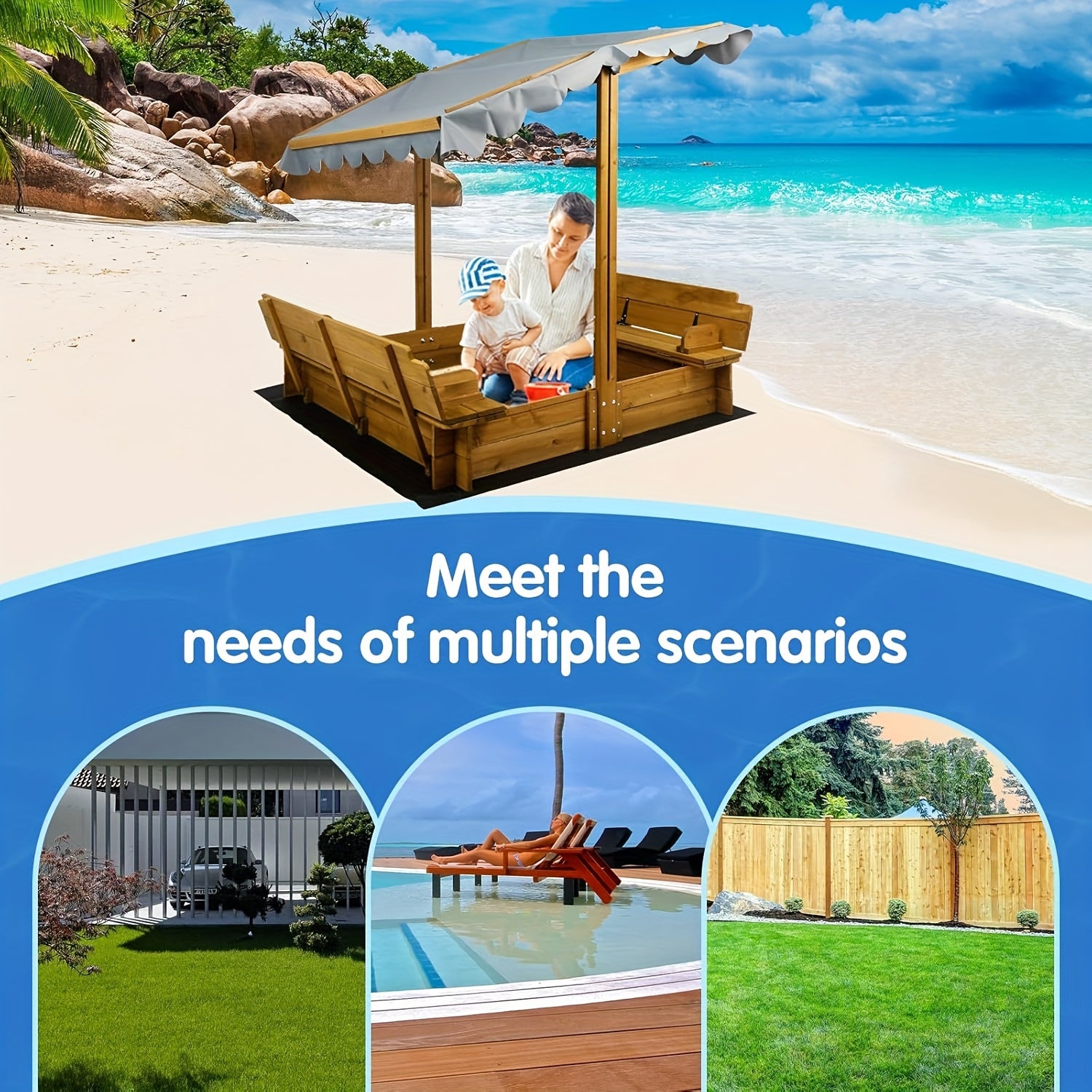 Experience outdoor play with the Petscosset Wooden Sandbox with Lid, Canopy, and Benches — a durable, kid-friendly setup built for sunny days and imaginative adventures.