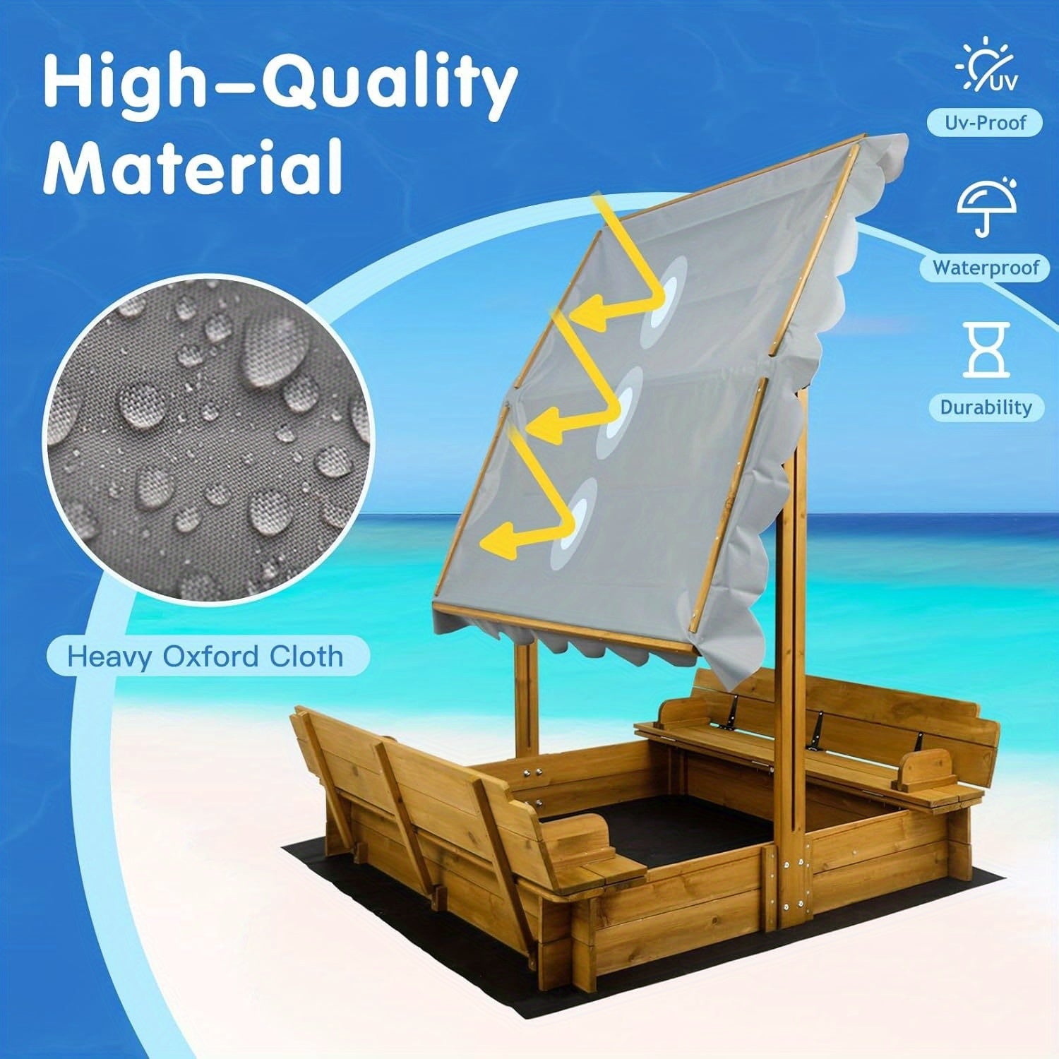 Designed to blend safety, practicality, and playful appeal, this sandbox invites kids to dig, build, and imagine in the fresh air. The sturdy wooden frame stands up to outdoor use, while the canopy keeps playtime comfortable rain or shine. Perfect for backyards, patios, or playground spaces, it's a versatile centerpiece for family fun.