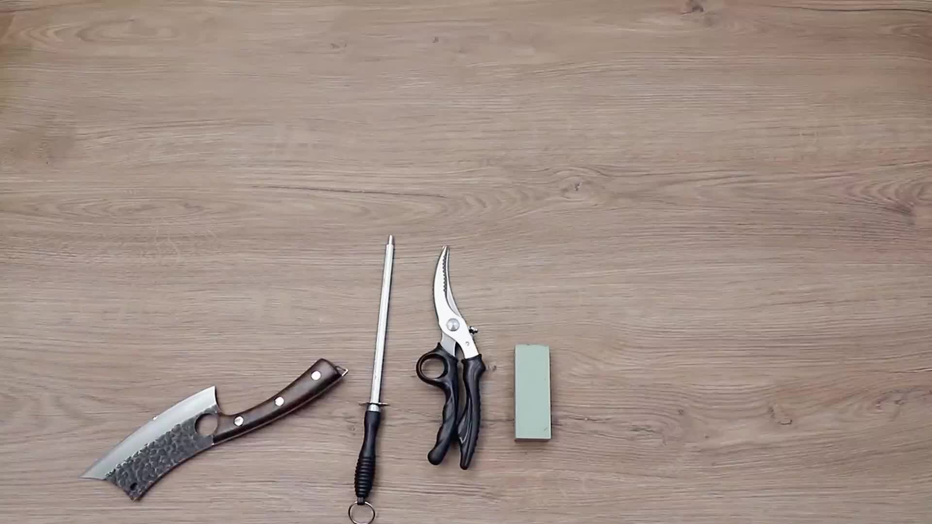 Complete 15-piece set: Includes 10 versatile cutters, a portable leather knife pouch, honing steel, double-sided mini sharpening stone, cut-proof gloves, and poultry shears—everything you need in one premium collection.