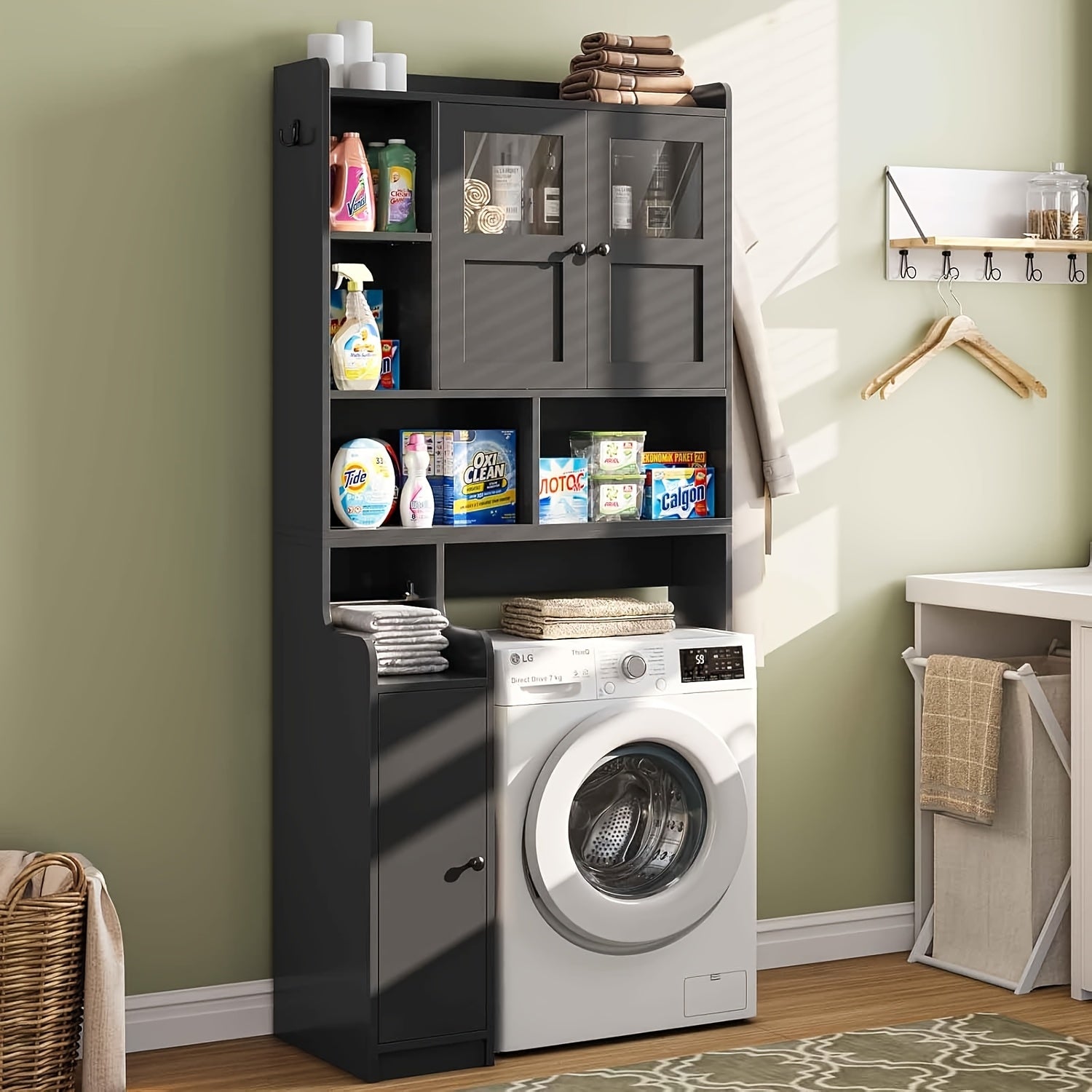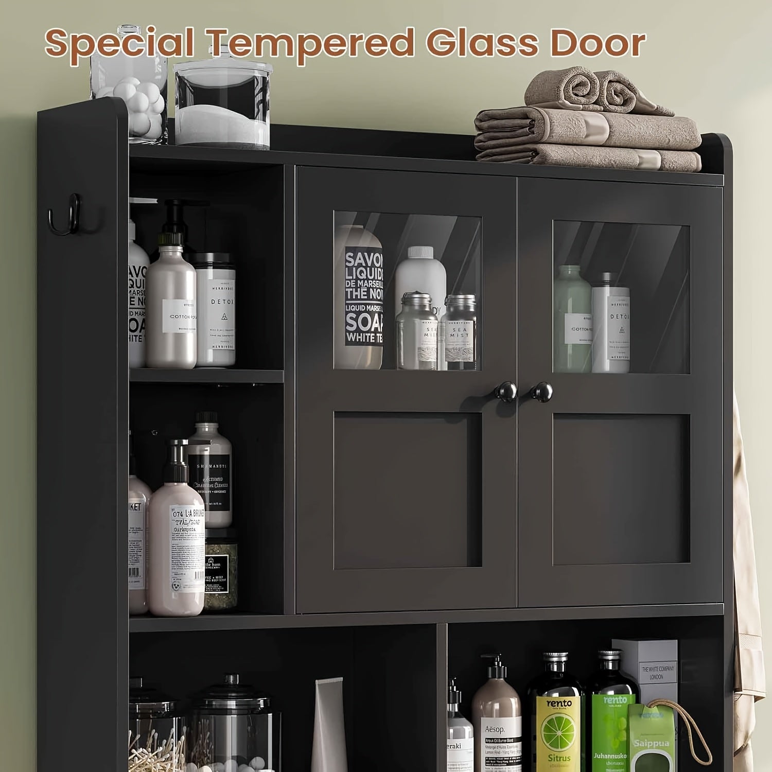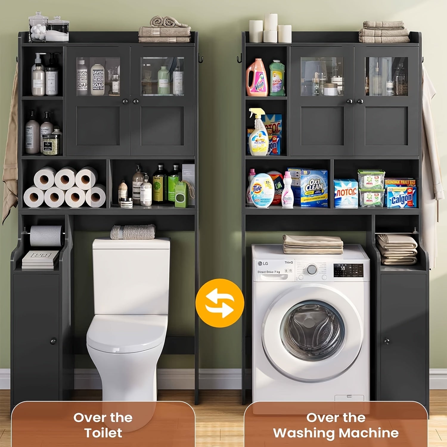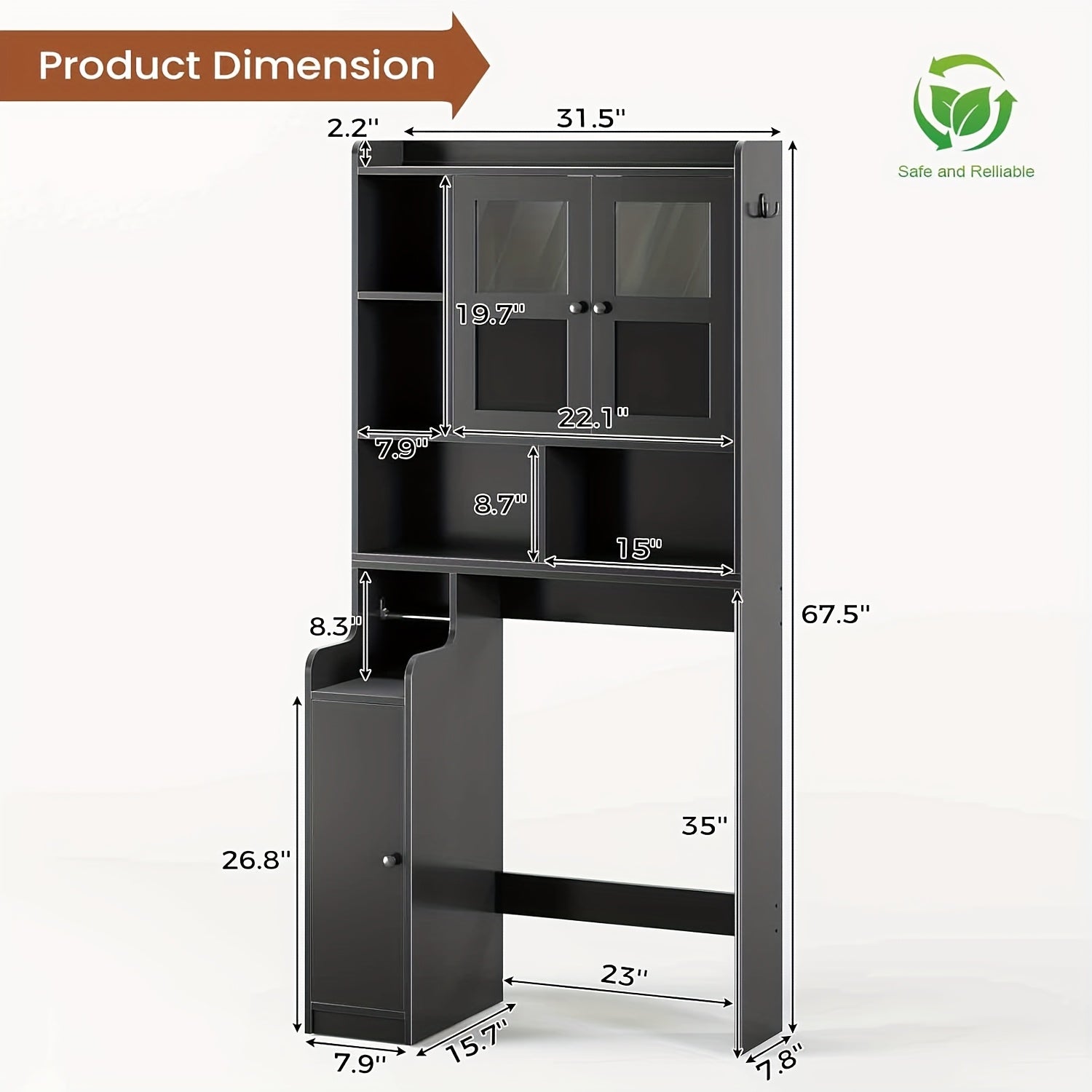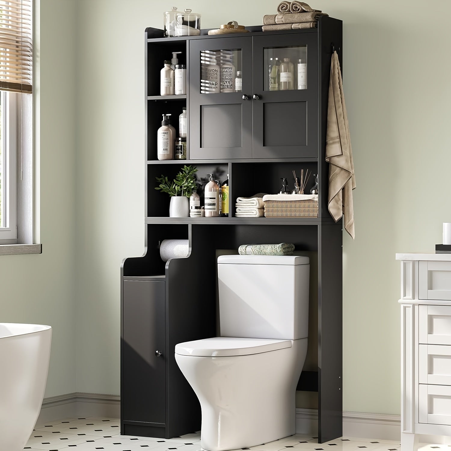 Over Toilet Cabinet With Glass Doors And Toilet Paper Holder