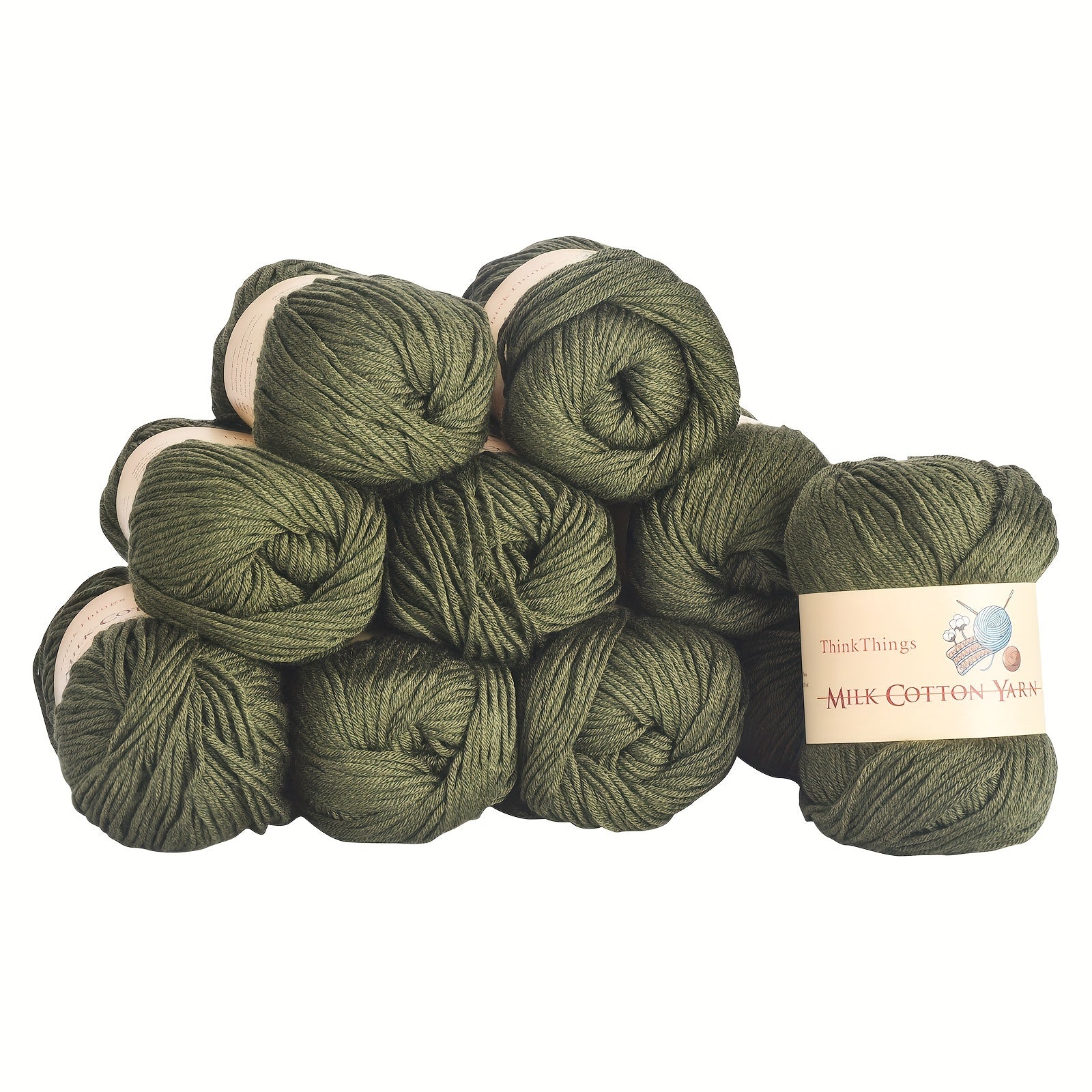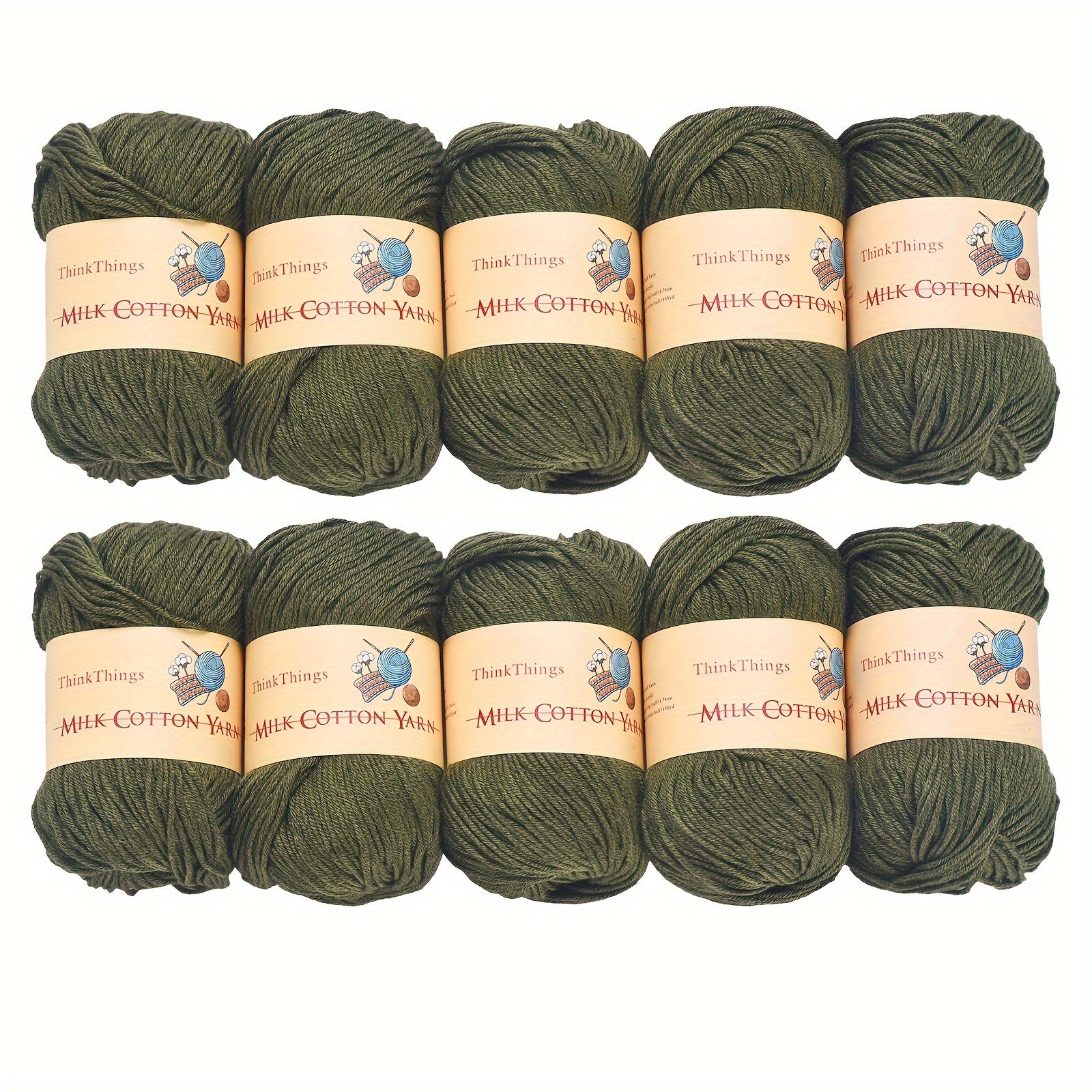 ThinkThings Army Green Acrylic Yarn For Crocheting: a reliable bulk pack designed for crocheters, crafters, and makers who crave texture, color, and consistency. This 10-ball set of army green yarn is perfect for projects big and small, from lightweight accessories to cozy blankets.