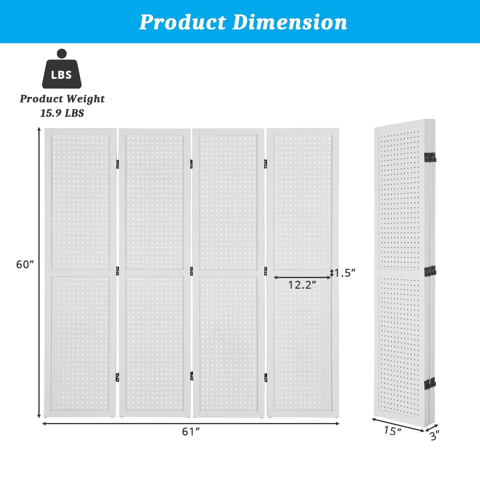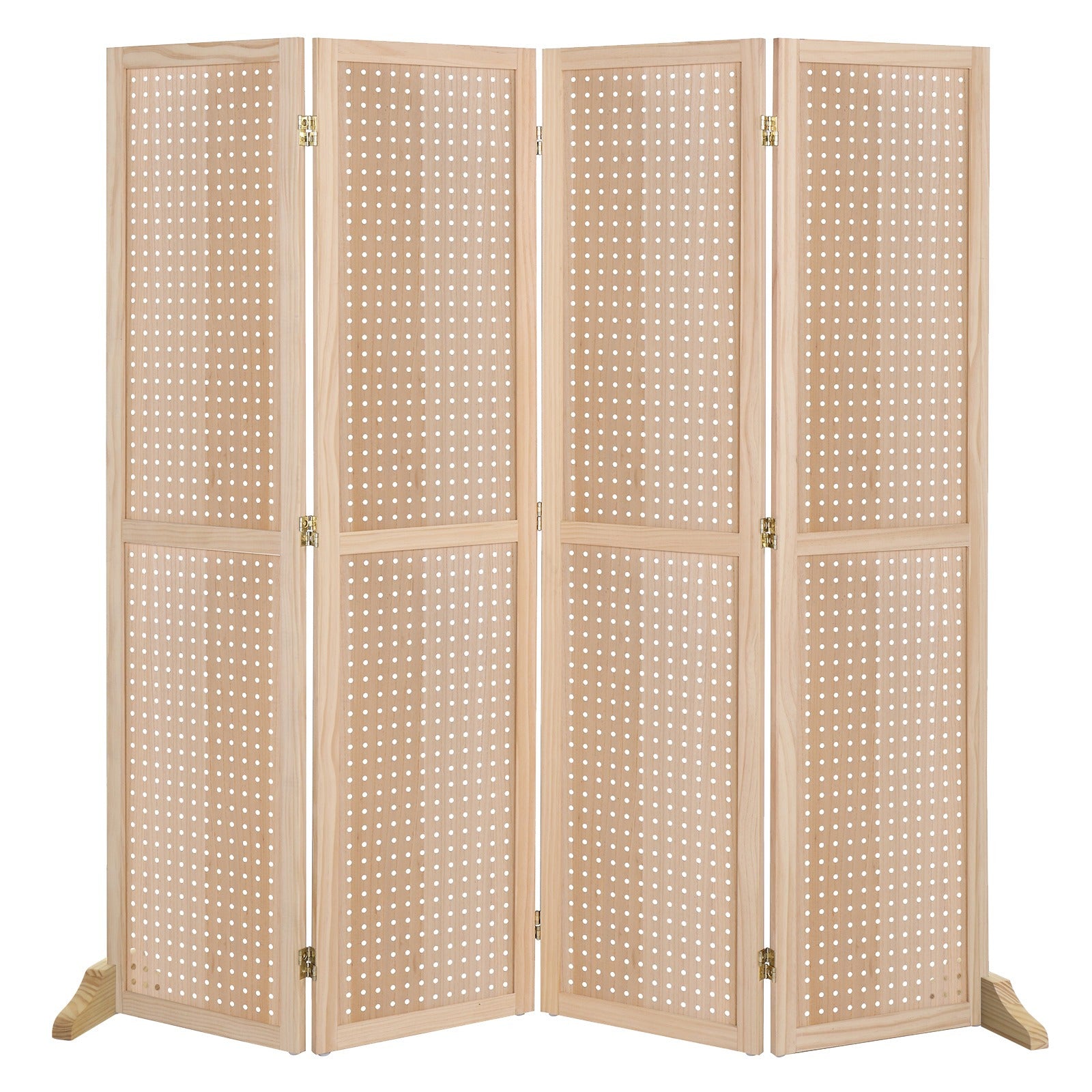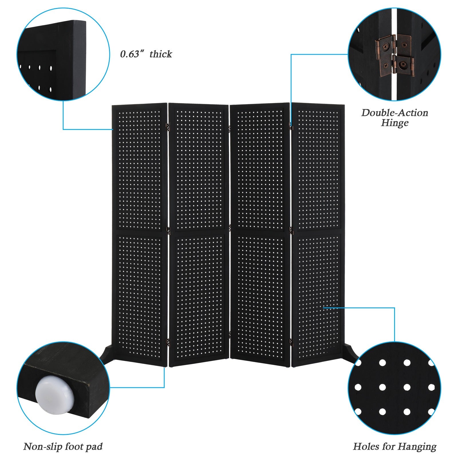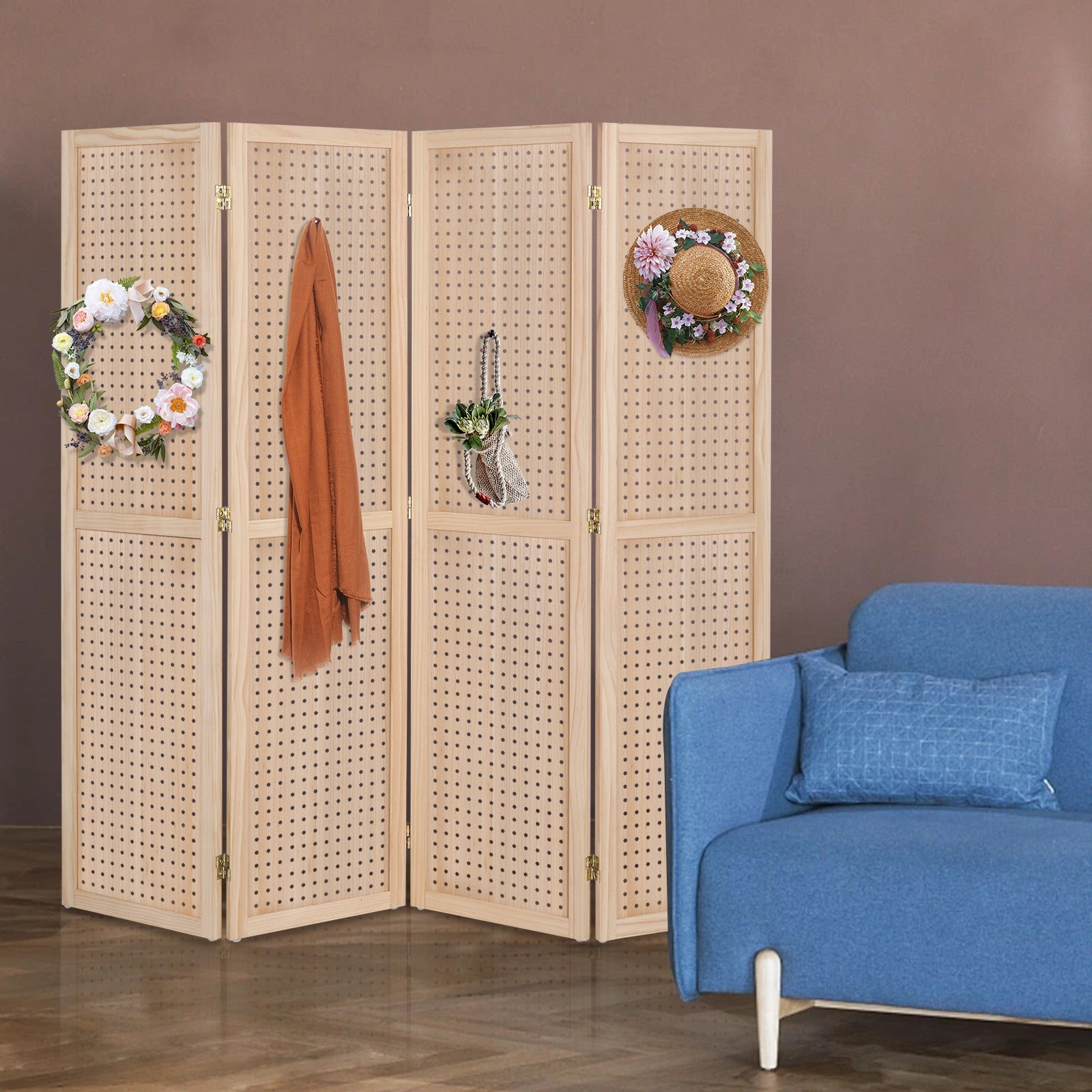 5 Ft Wood Freestanding Pegboard Room Divider Organizer