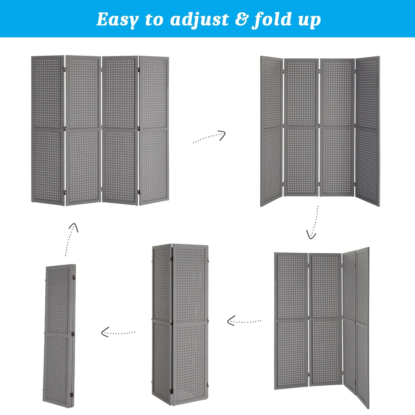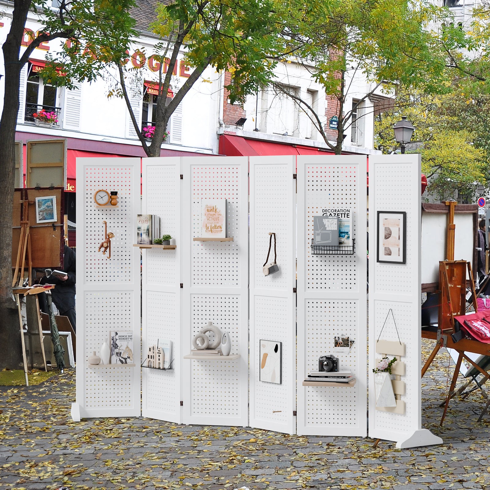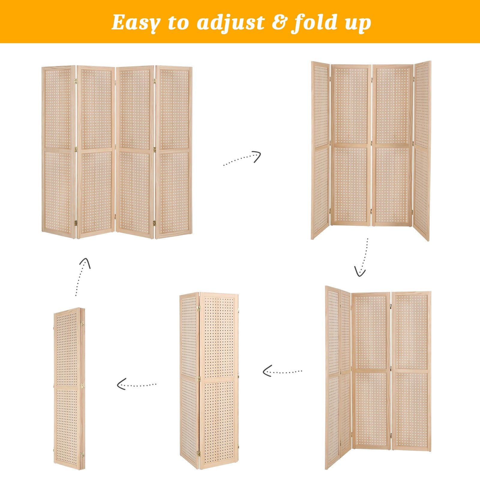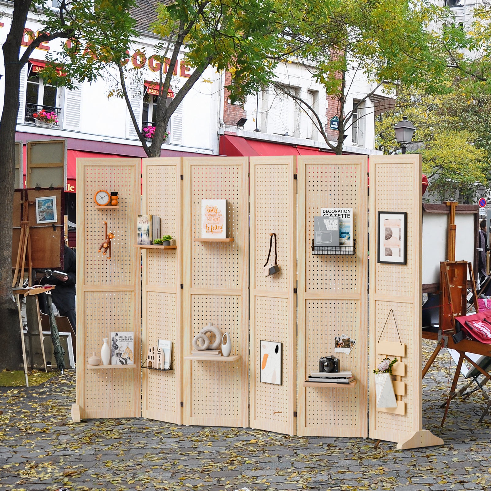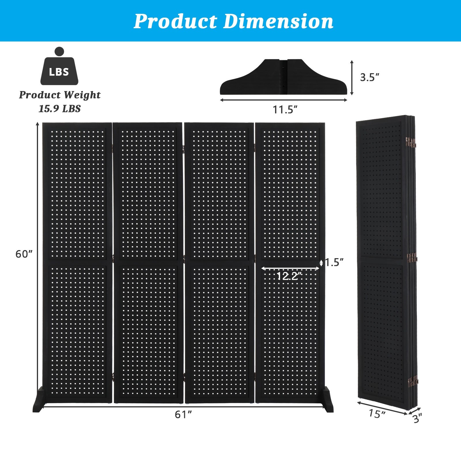 5 Ft Wood Freestanding Pegboard Room Divider Organizer