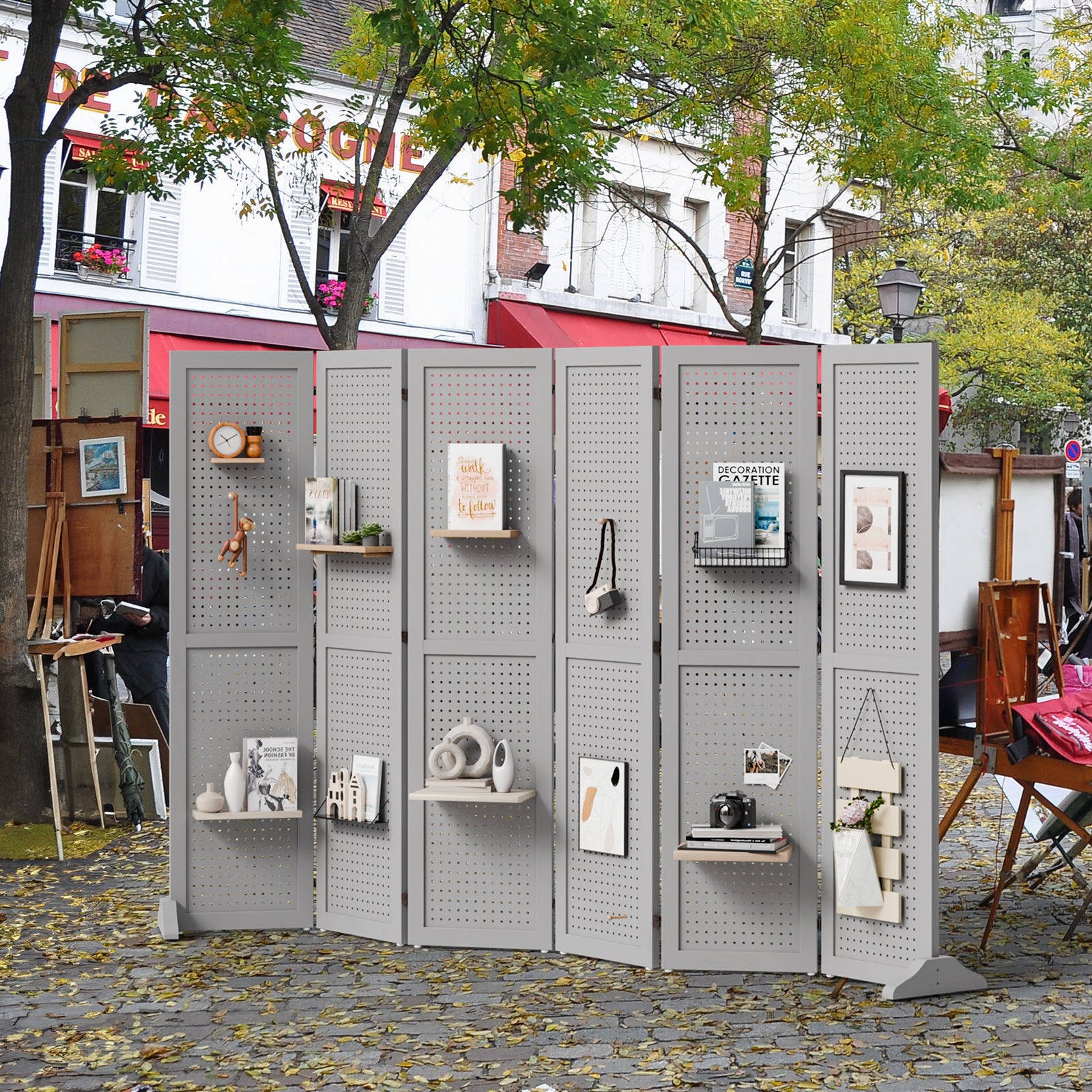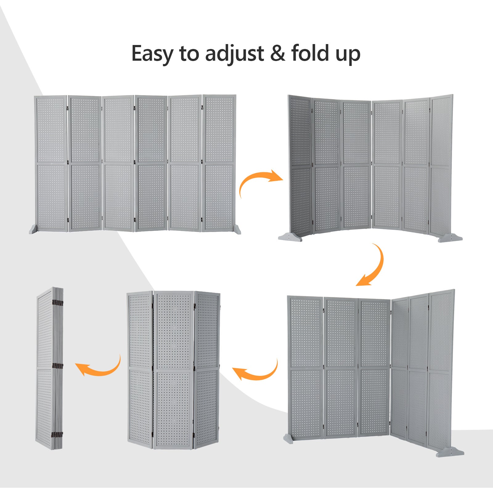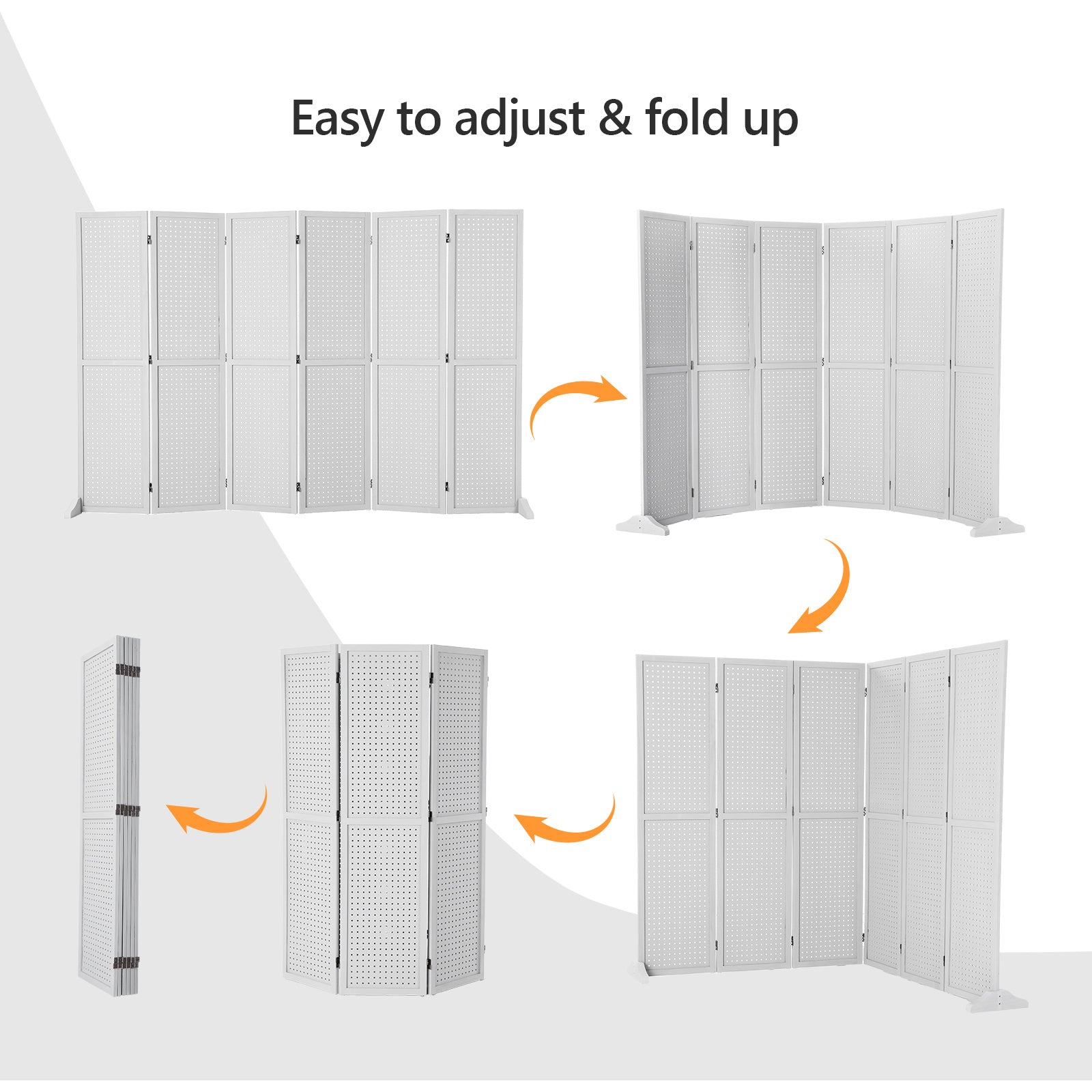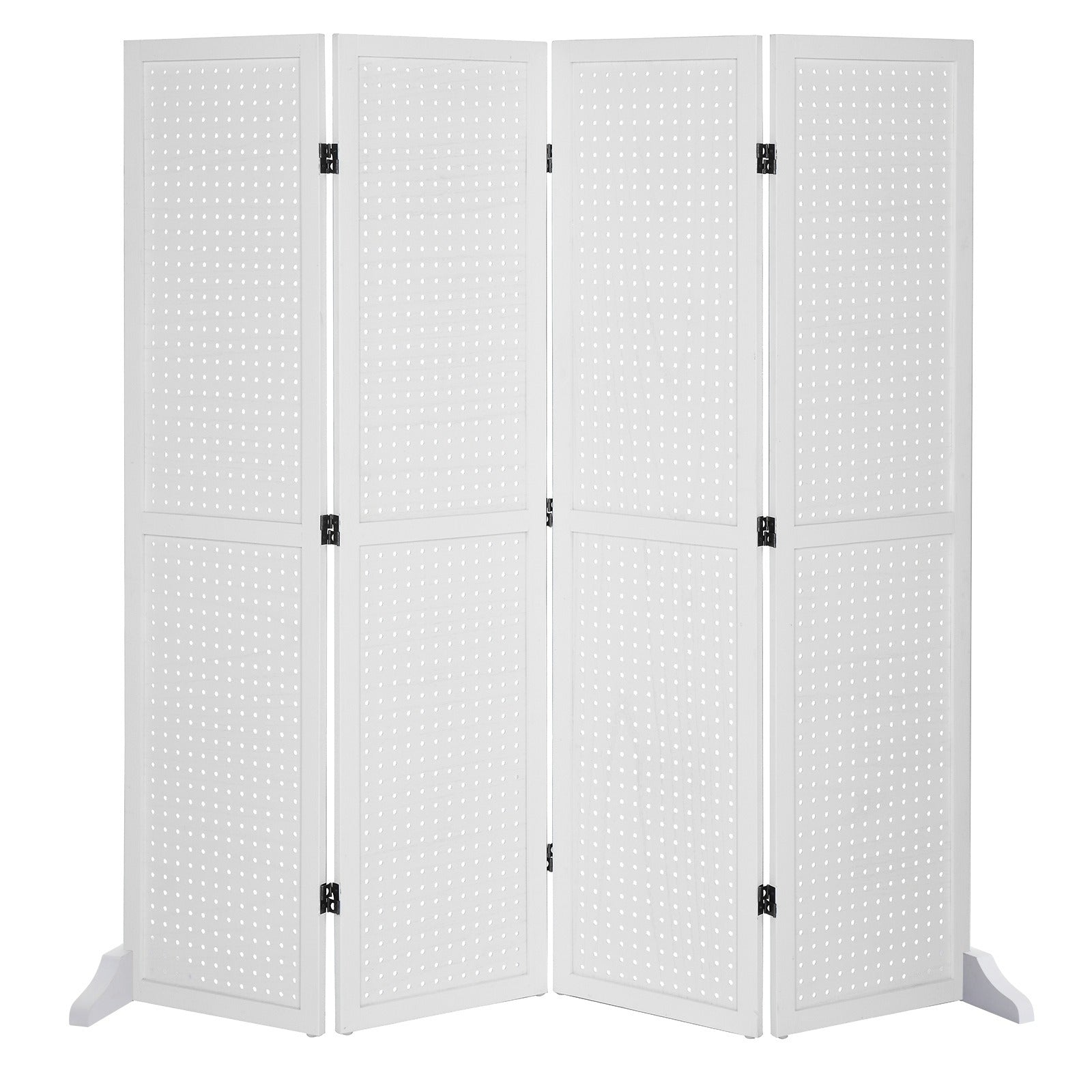 5 Ft Wood Freestanding Pegboard Room Divider Organizer