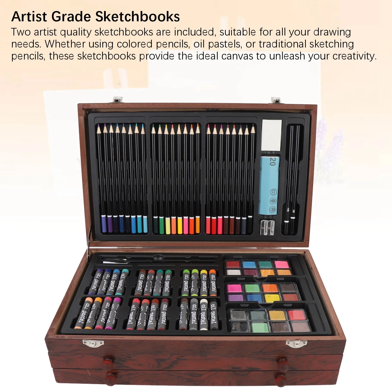 The wooden storage box is not just a container; it's a foldable storage solution that keeps your art supplies organized and accessible, making it a great companion for school projects or at-home creativity. The compact design allows for easy transport, ensuring that you can take your art wherever you go.