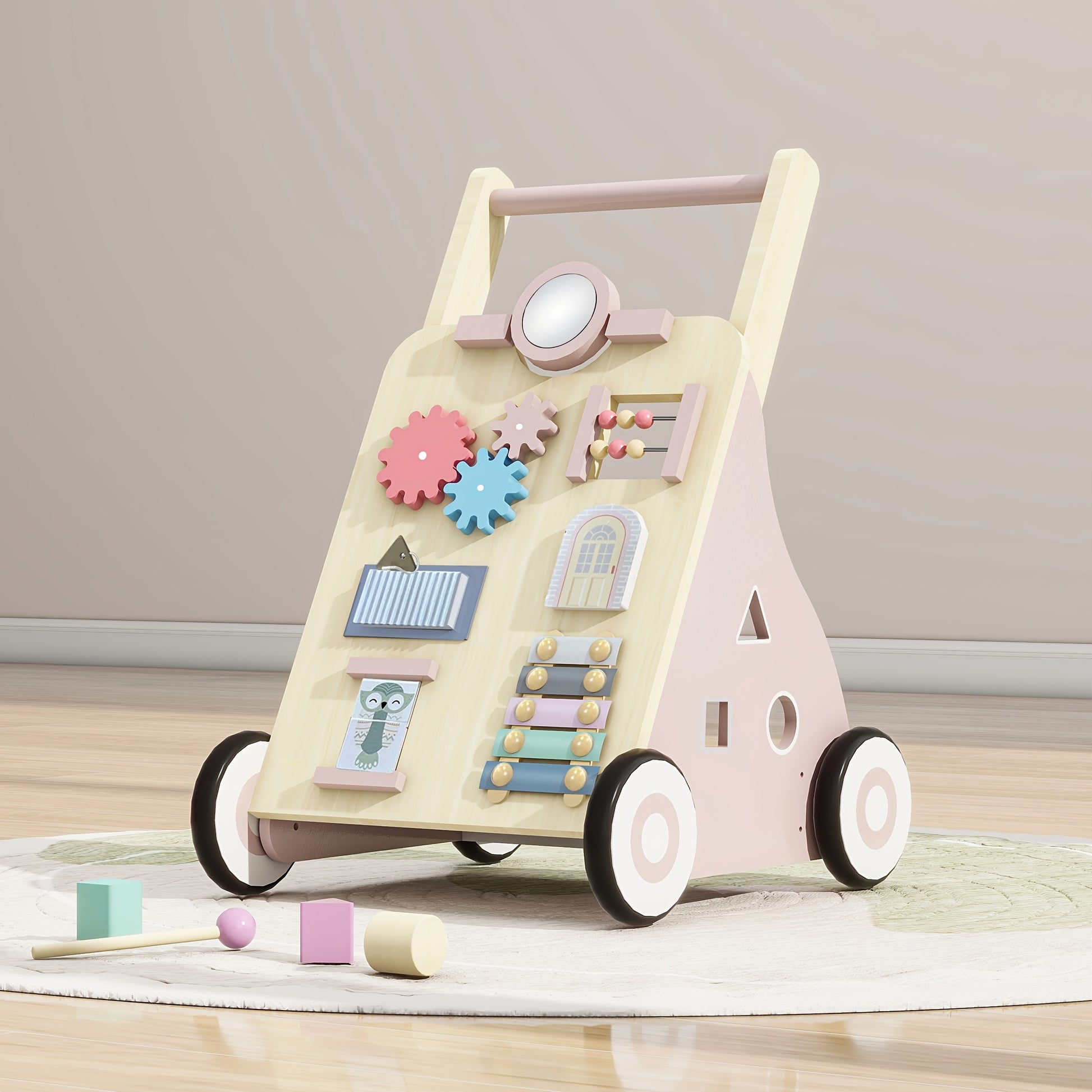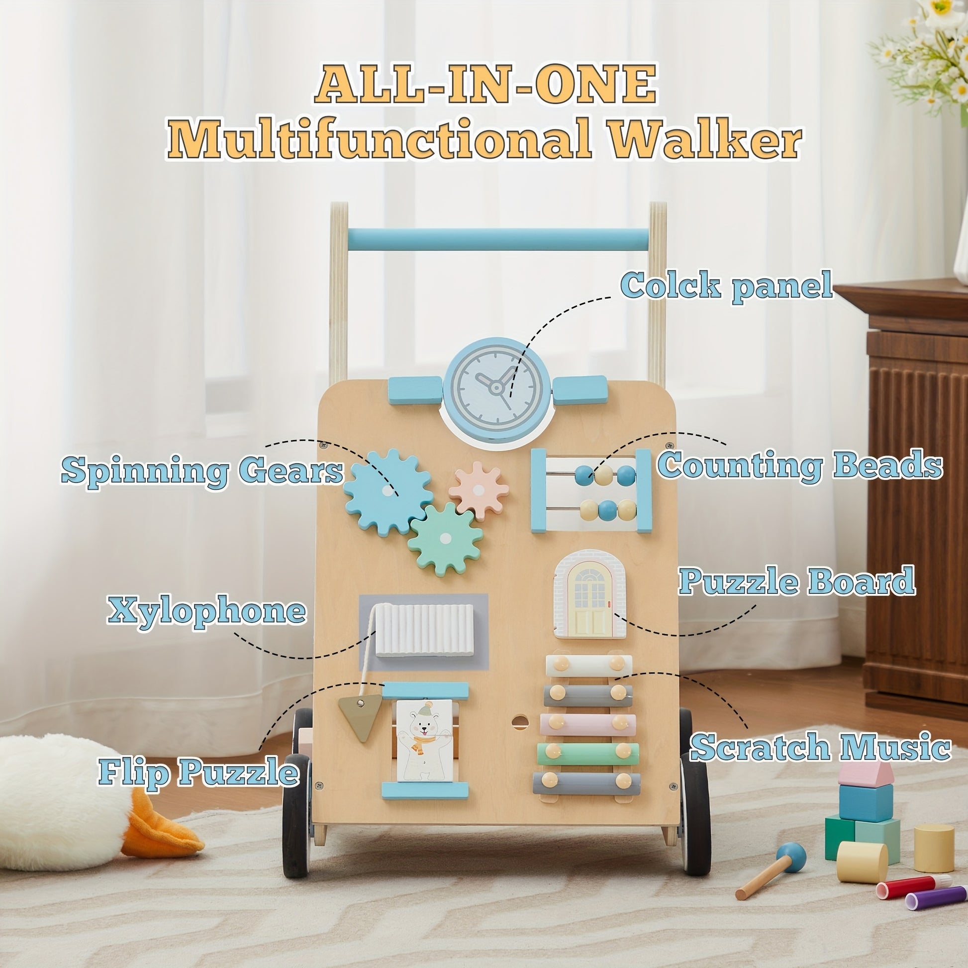 Interactive Wooden Push Walker for Babies 6-12 Months
